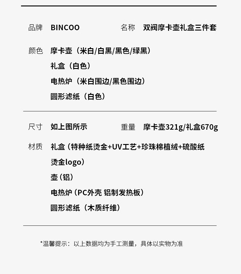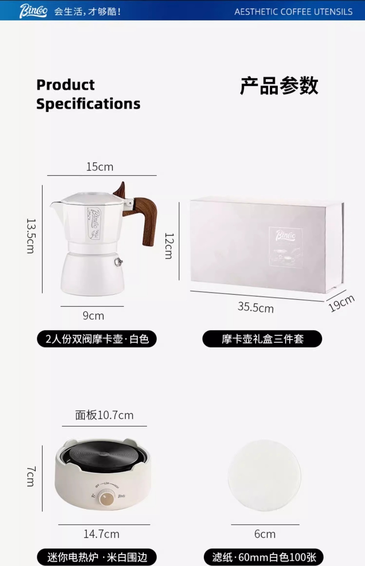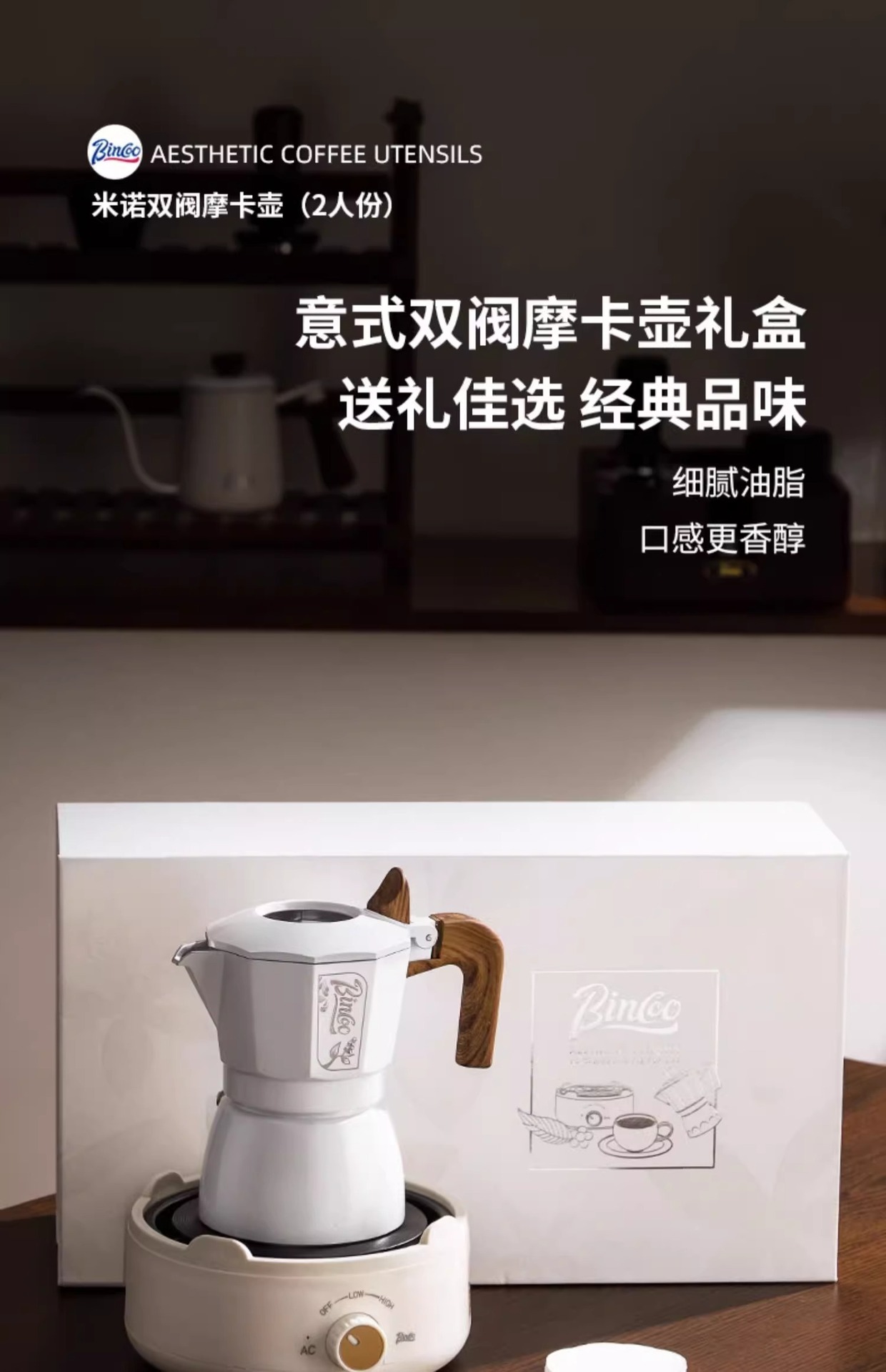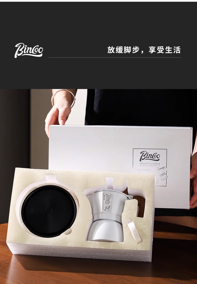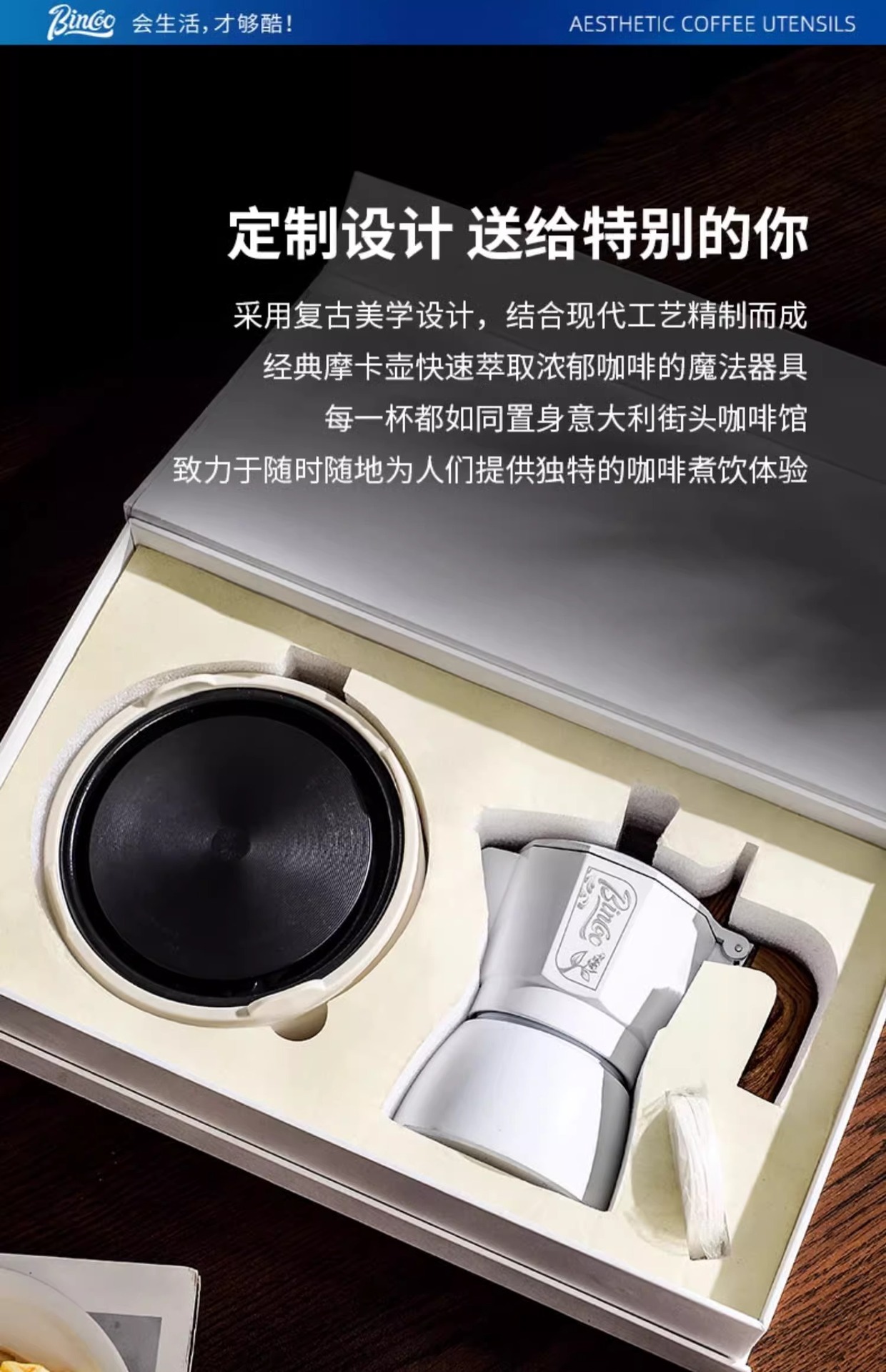 Bincooダブルバルブモカポットギフトボックスセットコーヒーポット誕生日結婚お土産祝日クリエイティブプレゼント