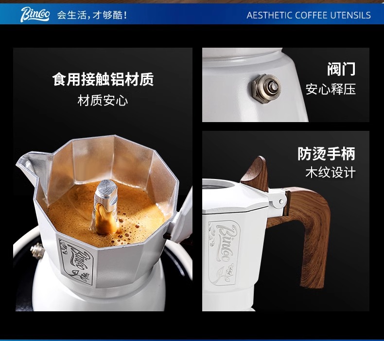 Bincooコーヒーモカポット家庭用小型エスプレッソ手沖コーヒーポット手研コーヒーマシンコーヒー器具