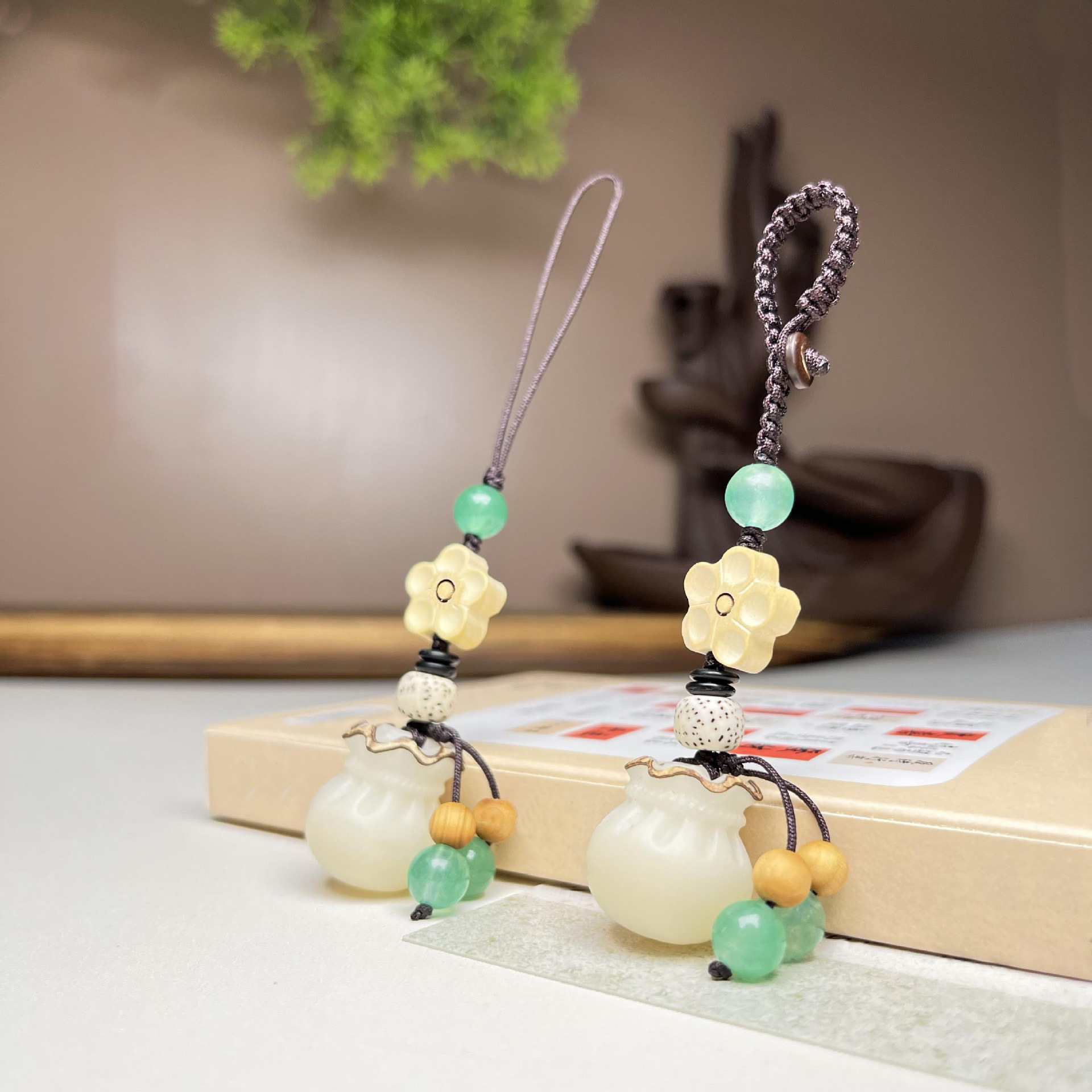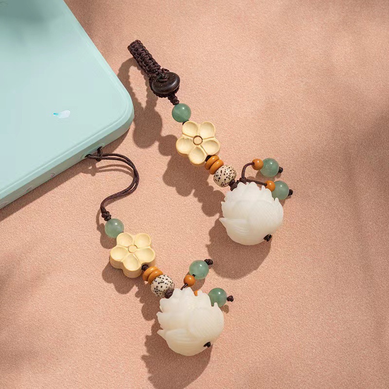 天然白玉は菩提蓮の鍵をまねて携帯電話のペンダントを掛けます。