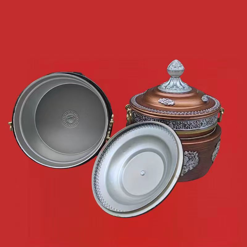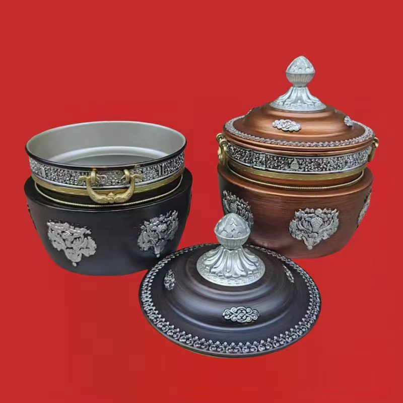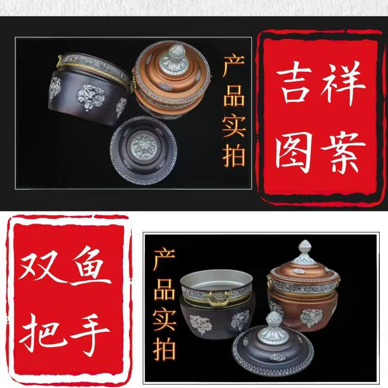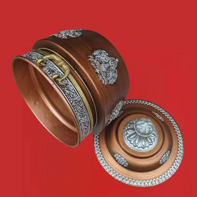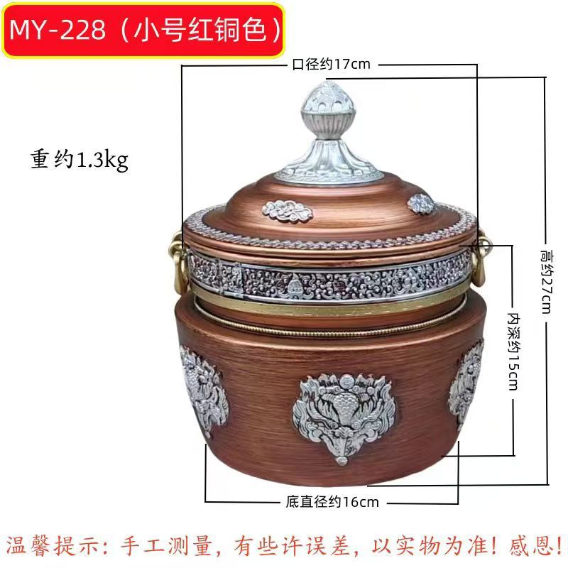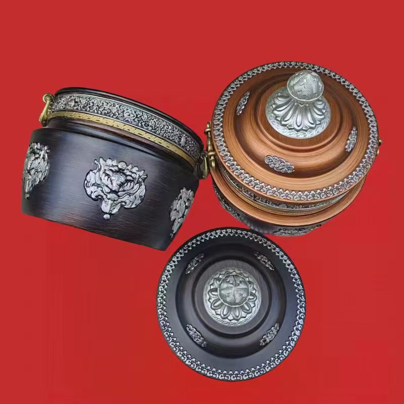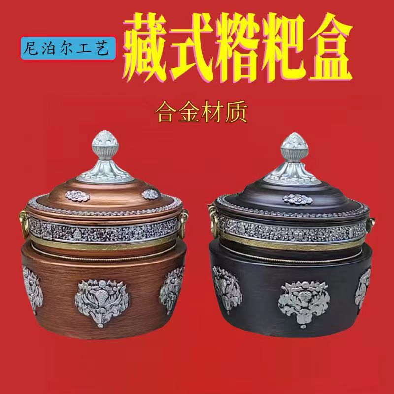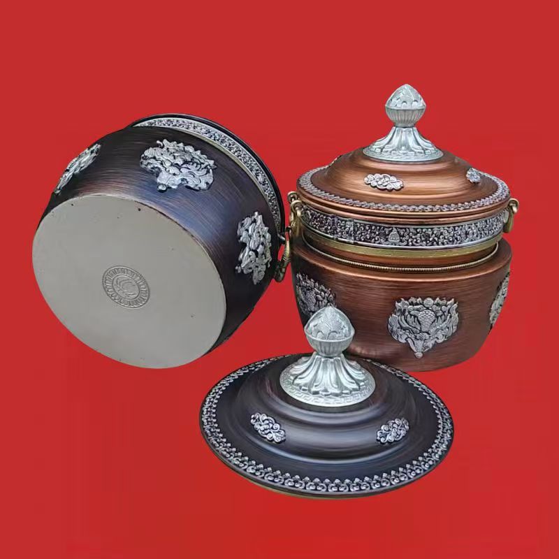 チベット式格桑花合金の箱収納缶の直筒缶の家庭用置物の赤色は古色に似せて選択できます。