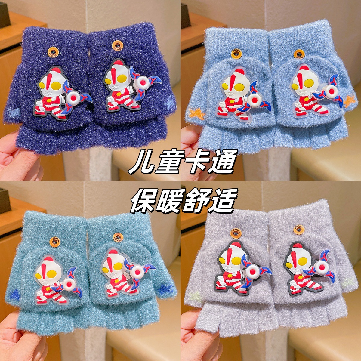 新型子供旋風ウルトラマン半指手袋五本指手袋ニットカバー