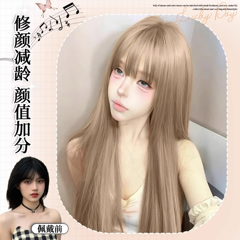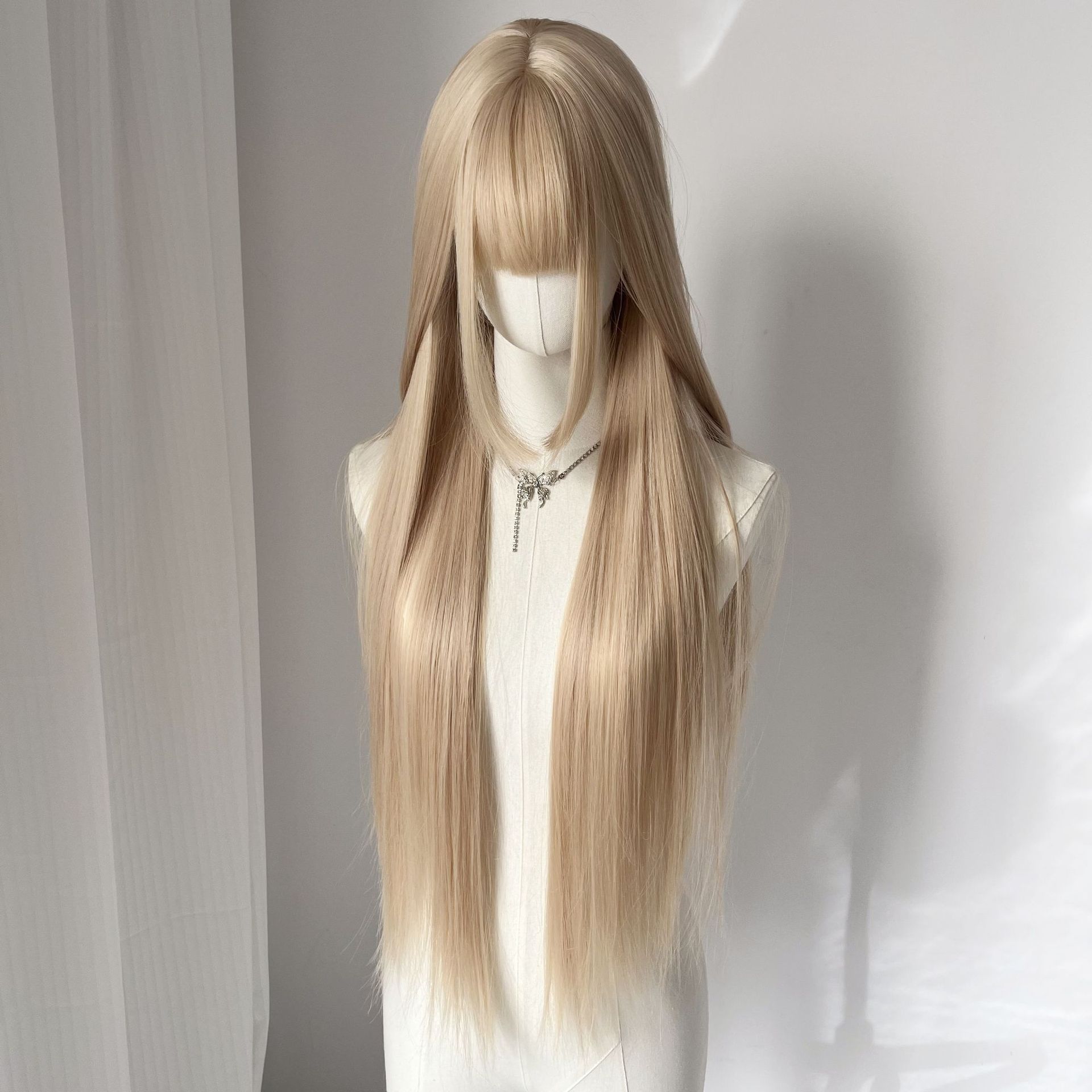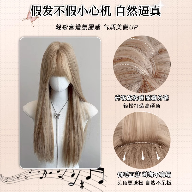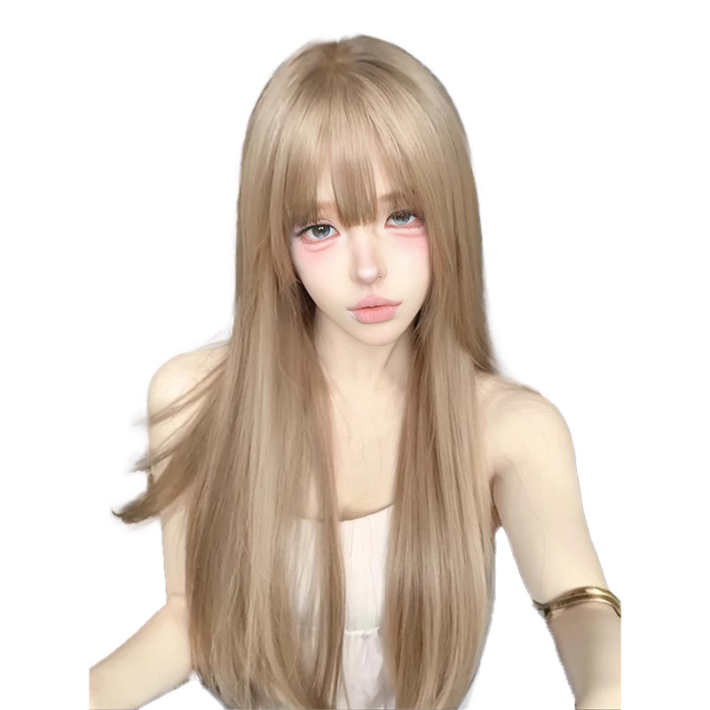 假发女氛围感蓬松齐刘海高层次奶茶白金色长直发自然日常全头套式