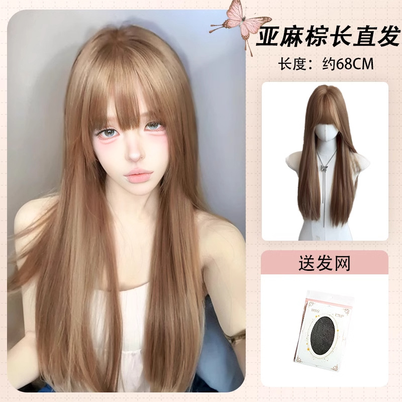 小円同金-【古早Baby】かつら女性長髪日系直髪ファッション減齢亜麻ブラウン全頭カバー