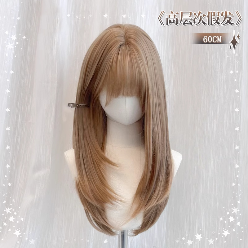 【布蕾奶茶】假发女古早刘海亚麻奶茶金高层次中长发自然全头套式