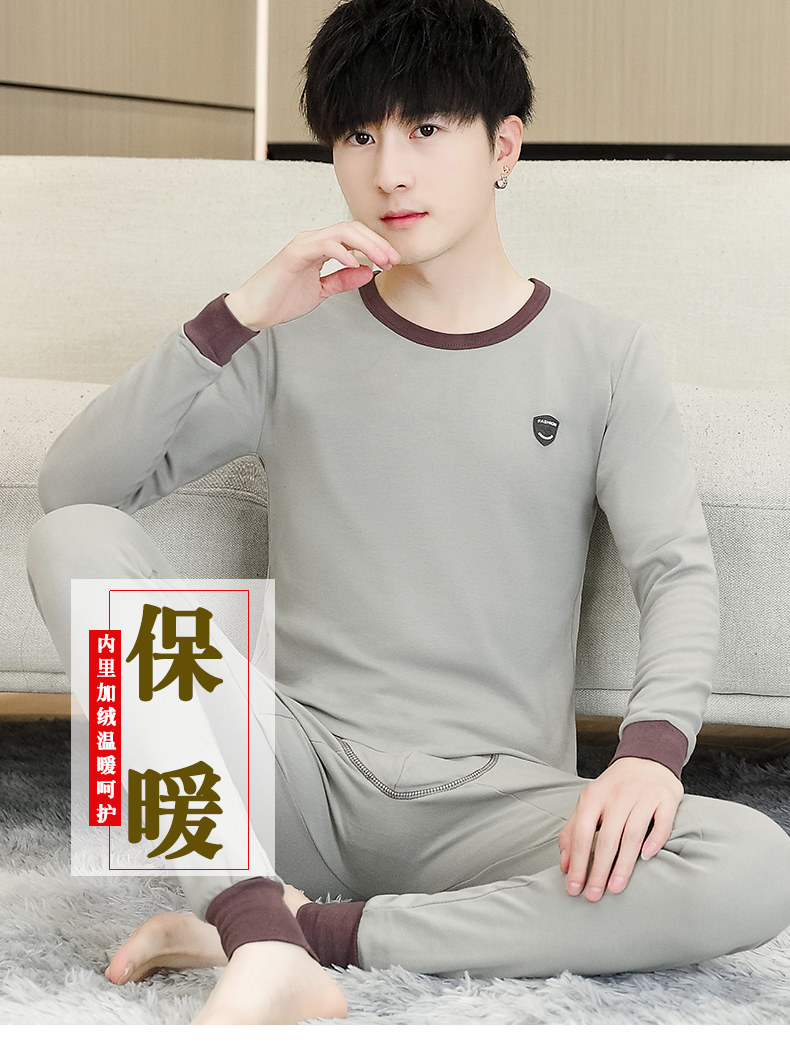 徳絨毛保温下着男性セット2024新型青少年高校大学生ベルベットダウン秋衣秋ズボン