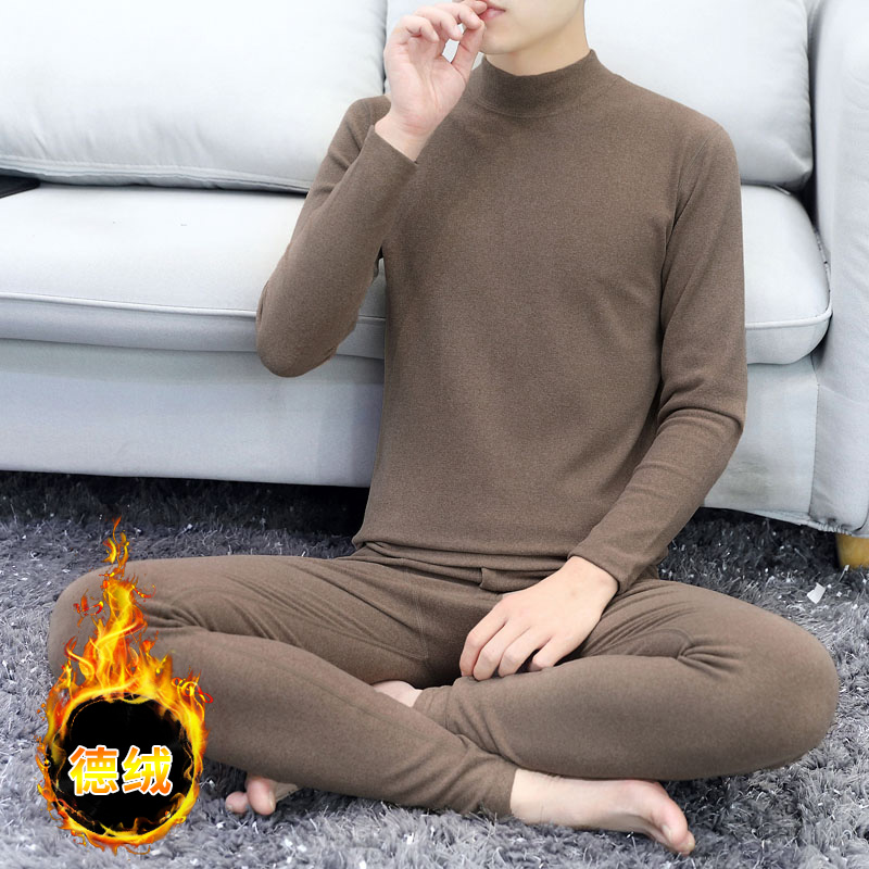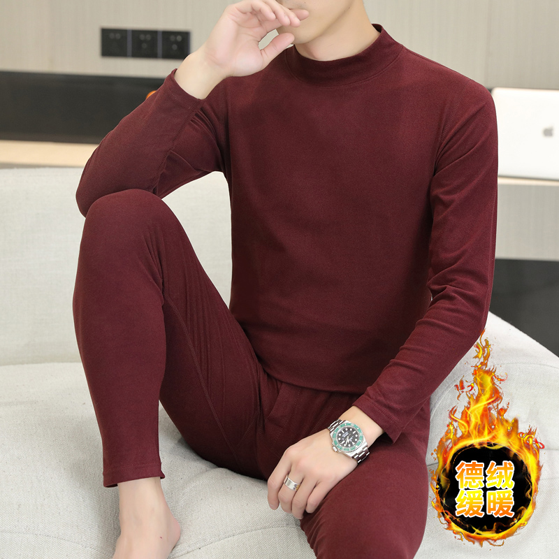 両面徳パイル保温下着男性ベルベット厚手シャツ秋冬半高襟徳栄秋衣秋ズボンセット