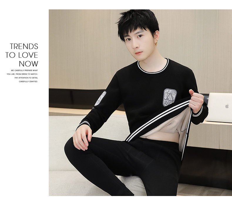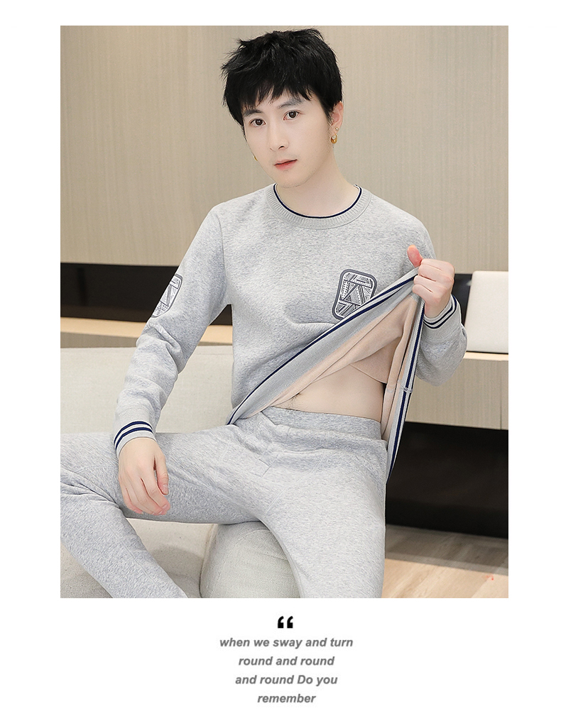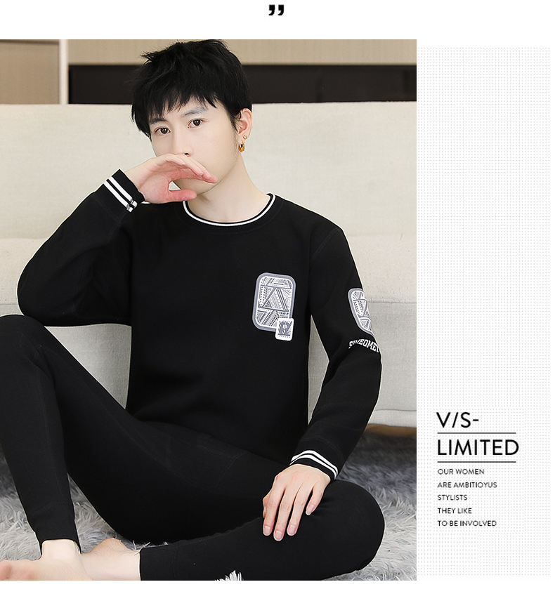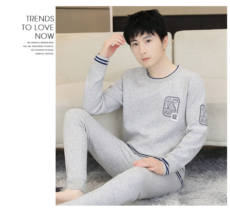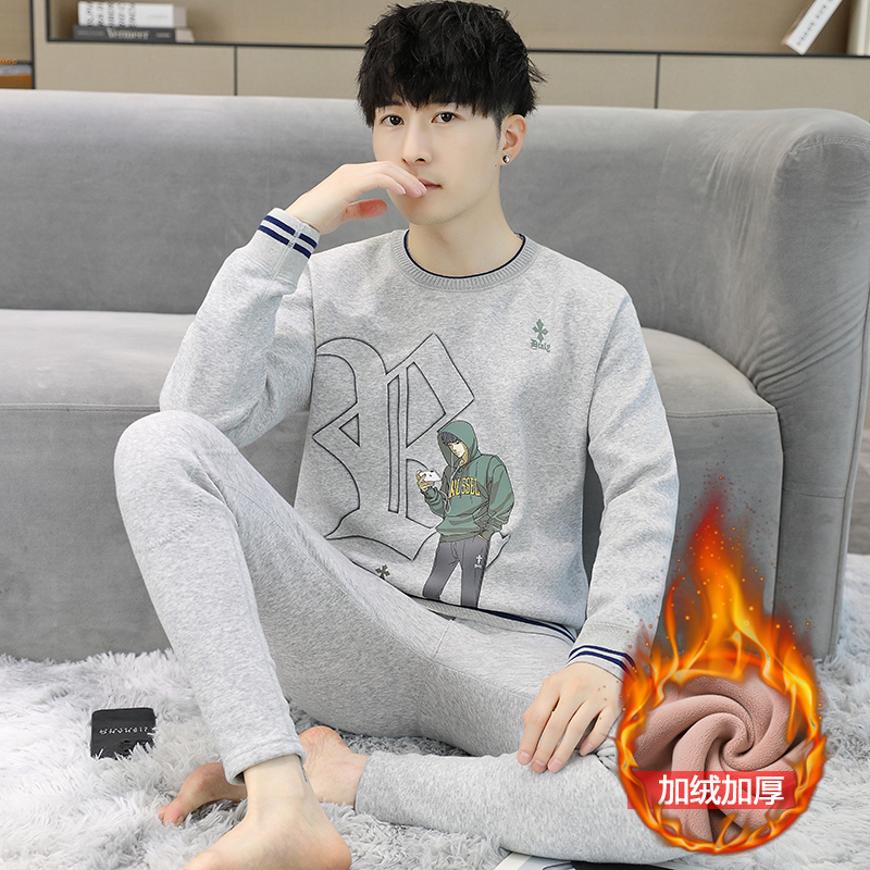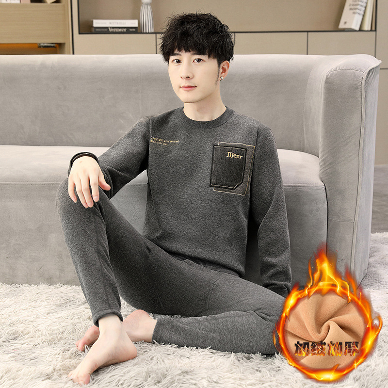 高級純綿保温下着男性セットの厚いベルベット秋冬男性青年の下着セット