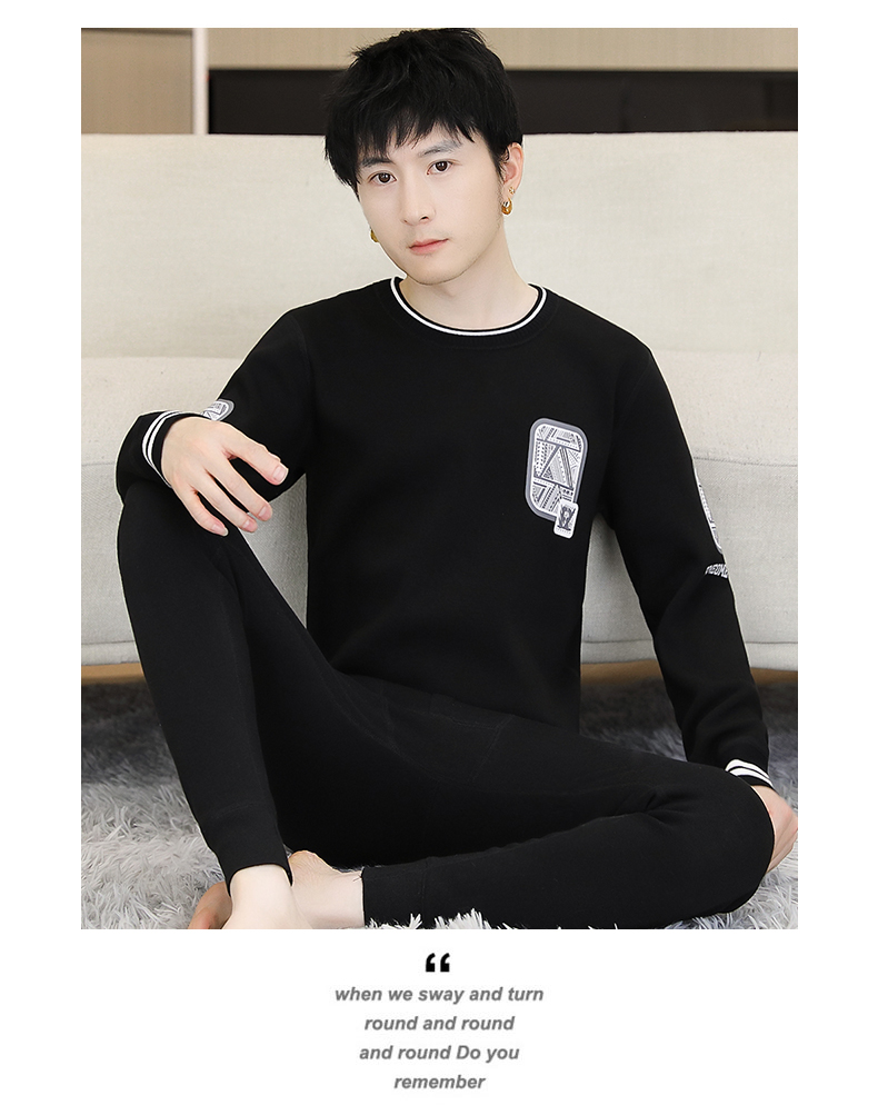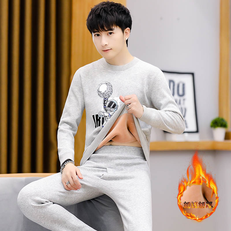 徳絨毛保温下着男性セット2024新型青少年高校大学生ベルベットダウン秋衣秋ズボン