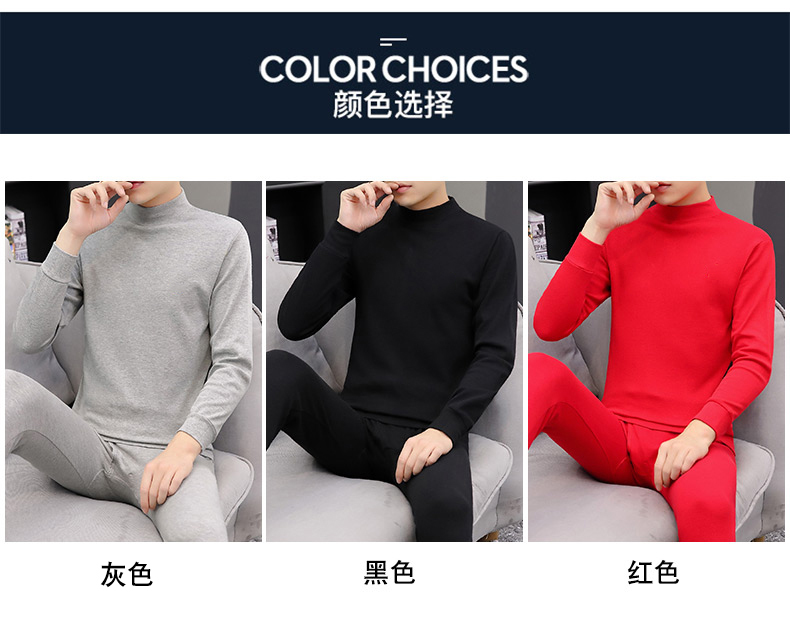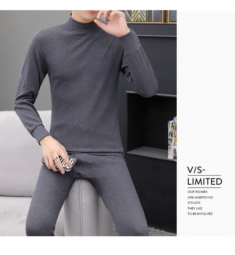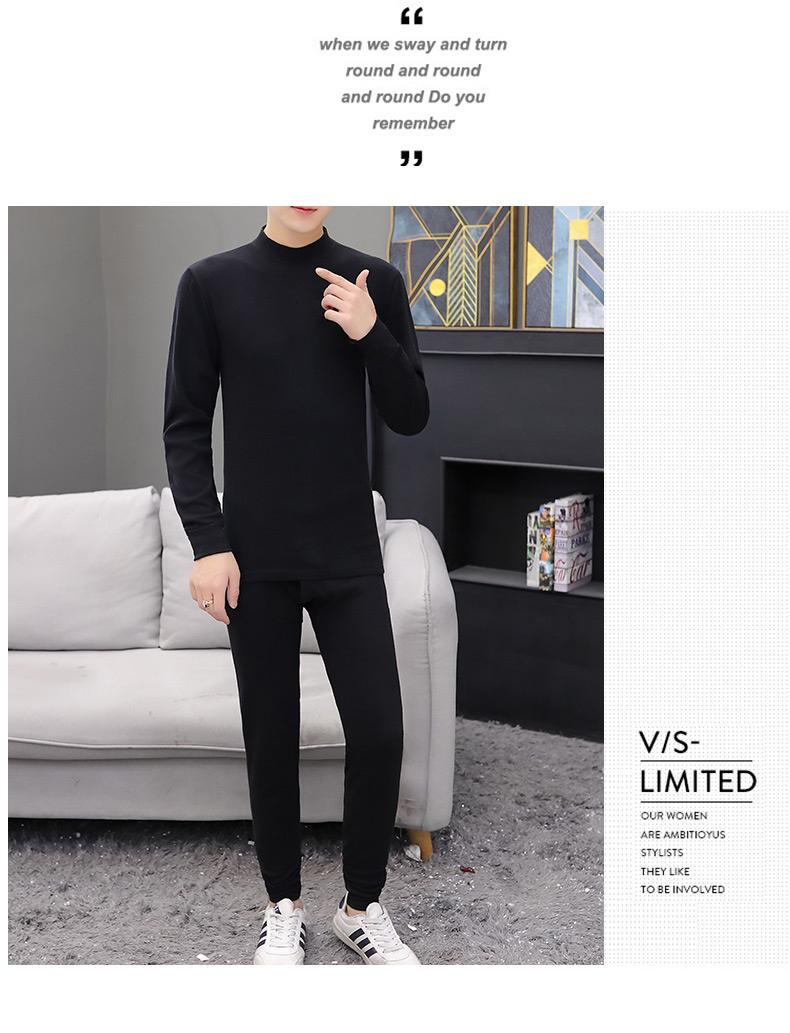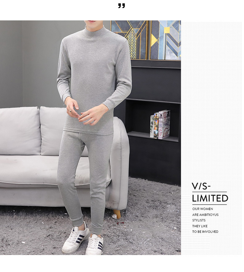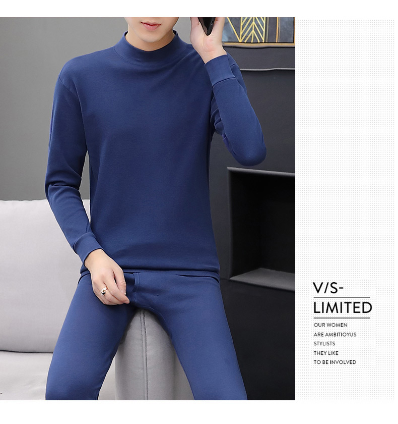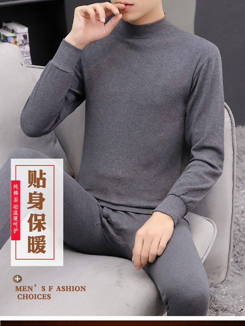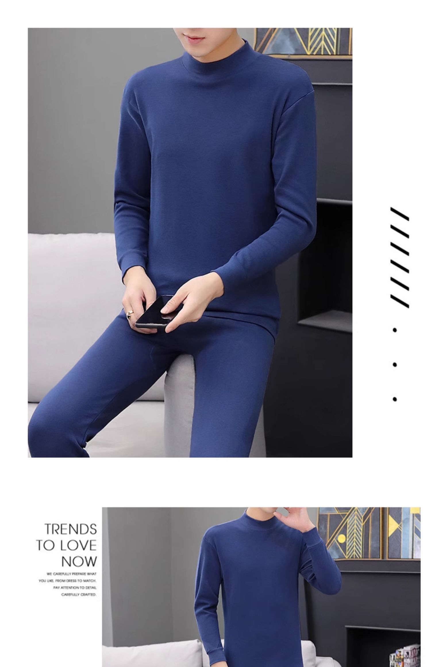 保温下着男性秋衣秋ズボンベルベット厚手青年中襟綿セーター半高襟冬防寒スーツ