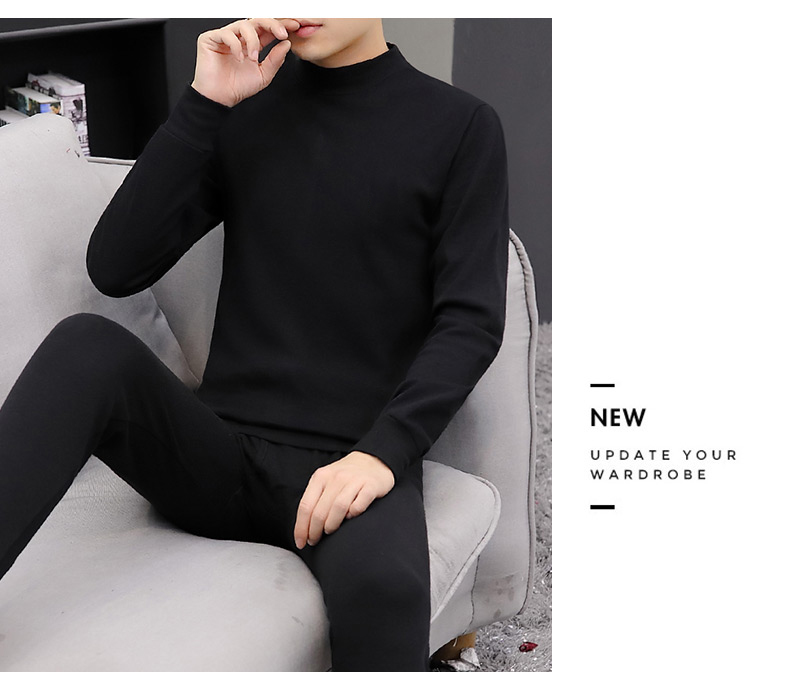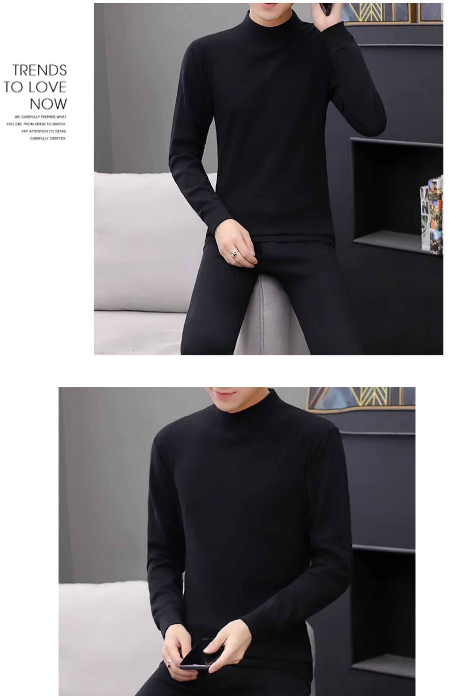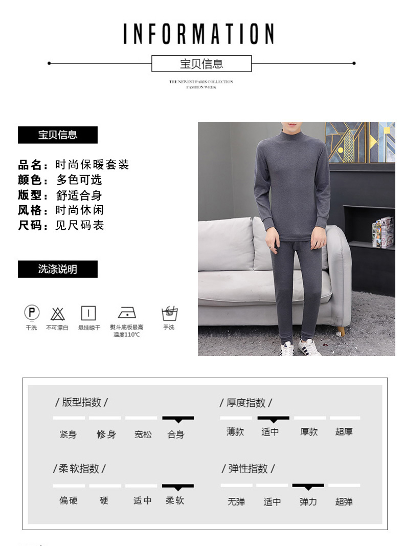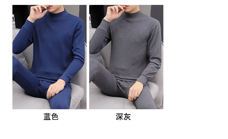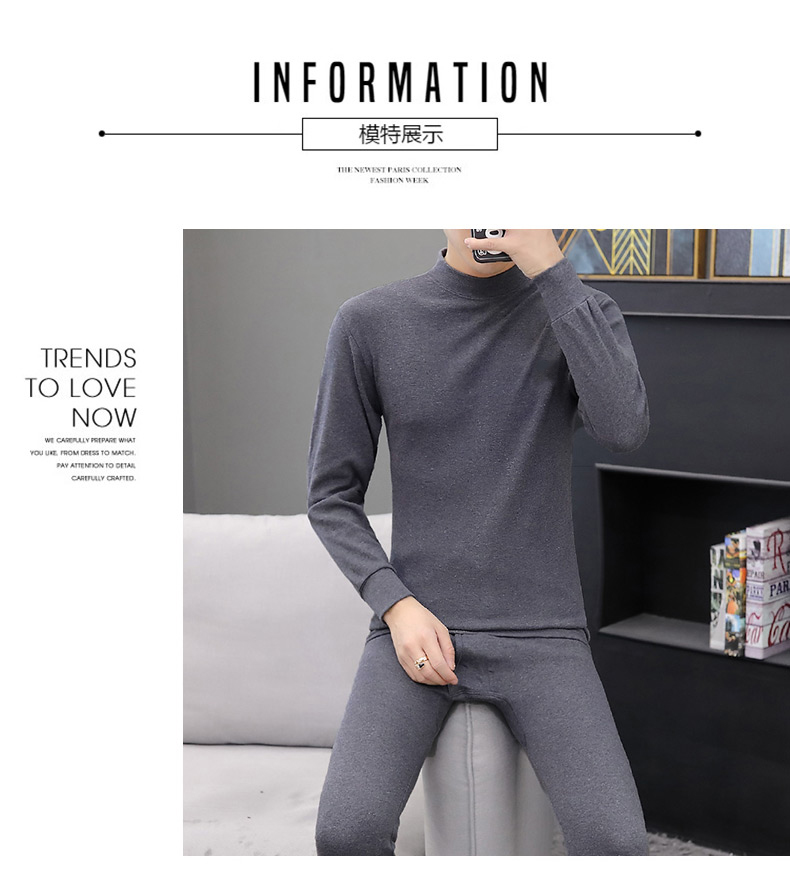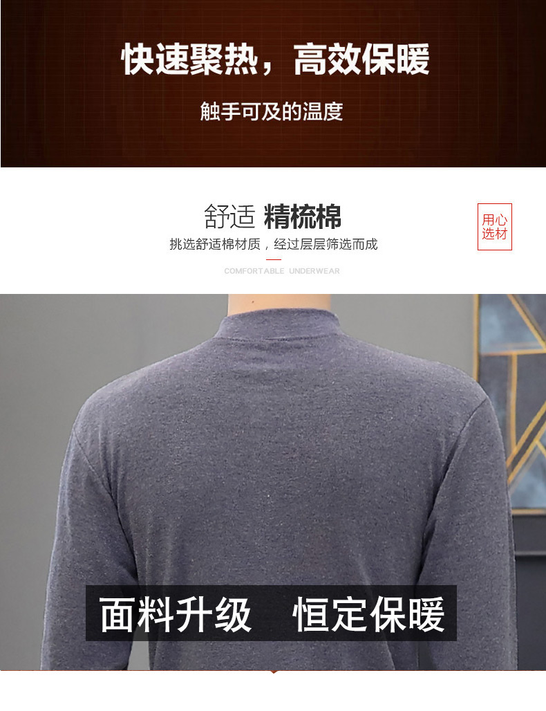保温下着セットの中襟秋冬男性無痕半高襟徳絨毛発熱ボトムシャツ秋衣秋ズボン男性モデル