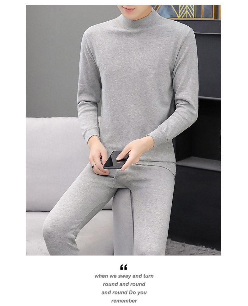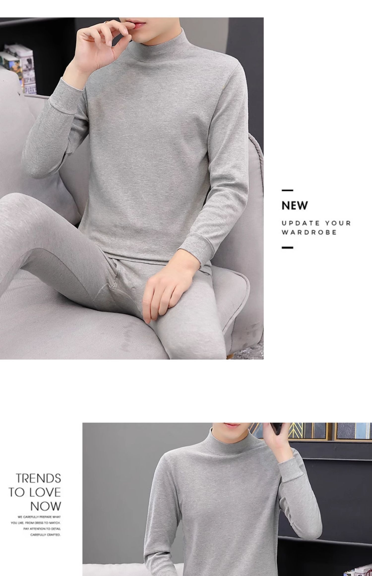 2025年冬用純綿秋服・秋ズボンセット メンズ ハーフタートルネック 保温下着 秋冬薄手インナー トレンド