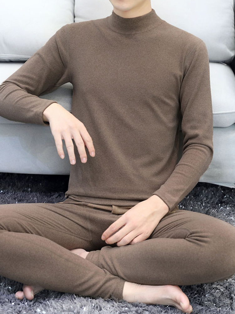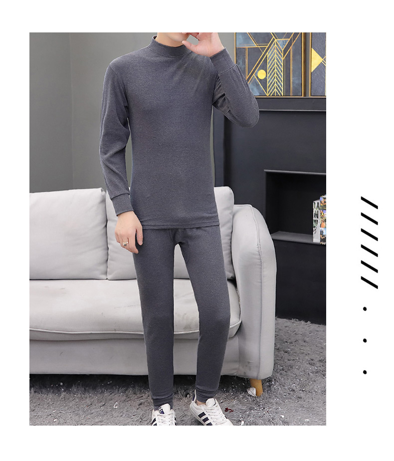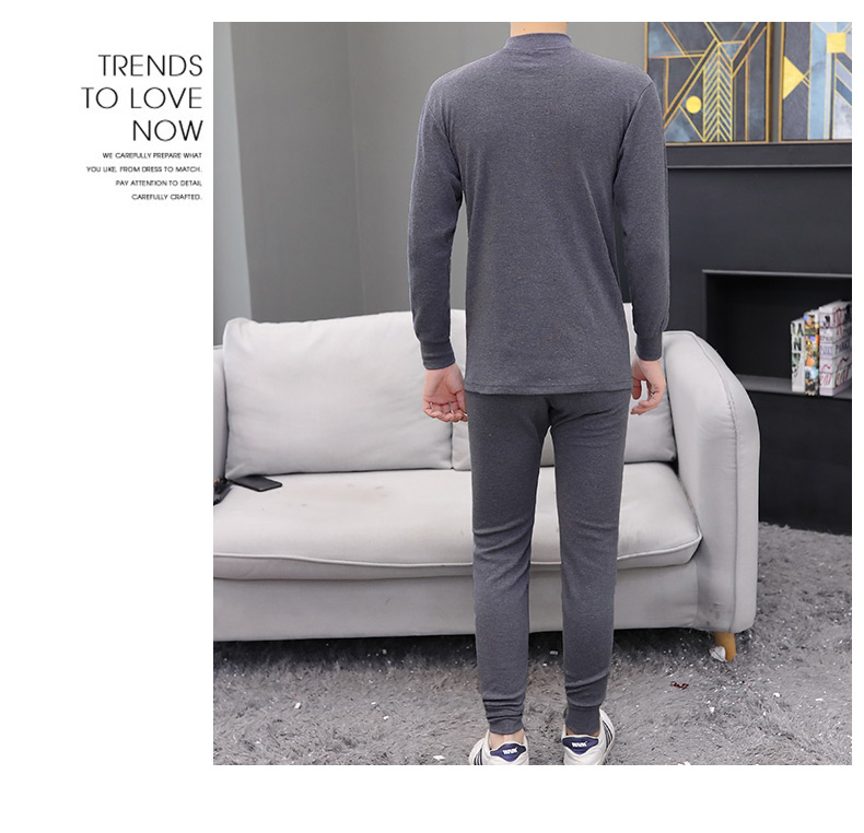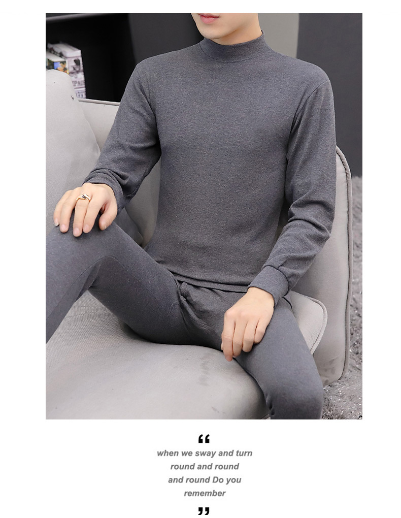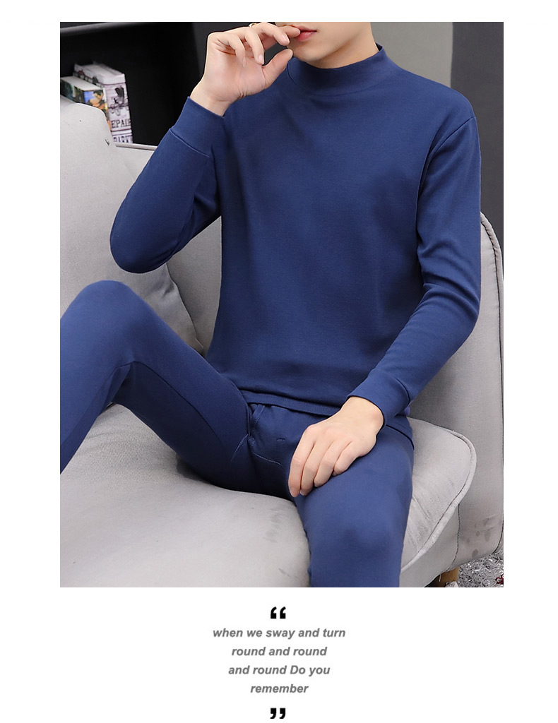 男性保温下着徳容発熱青年半高襟肌着シャツ両面徳絨秋衣秋ズボンセット