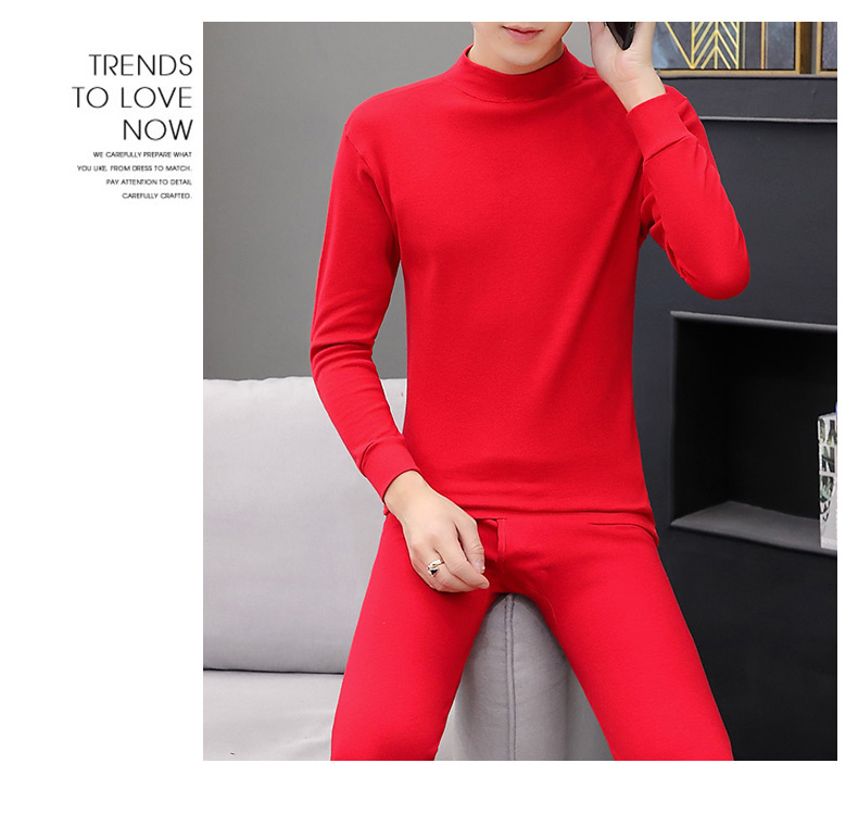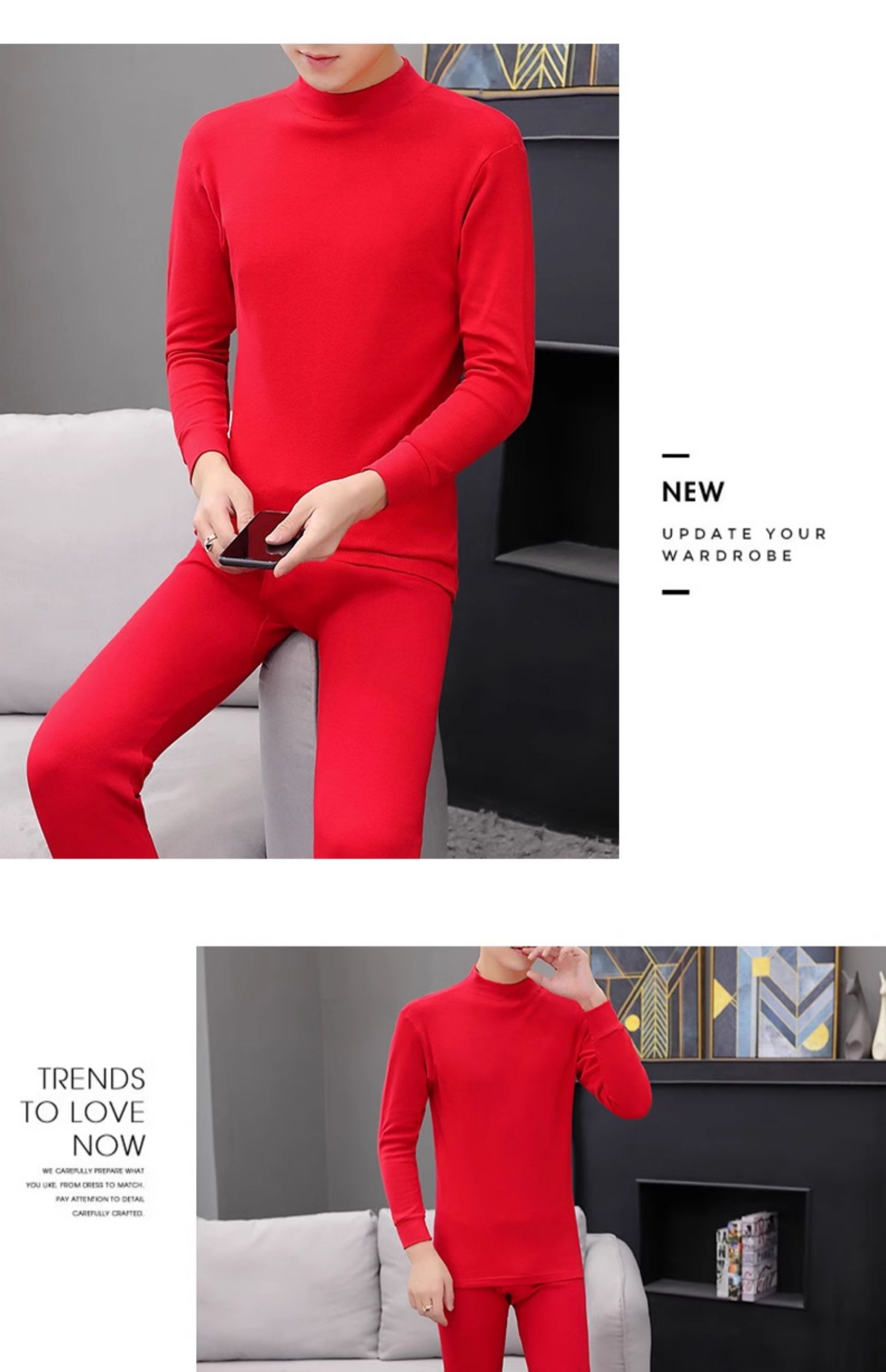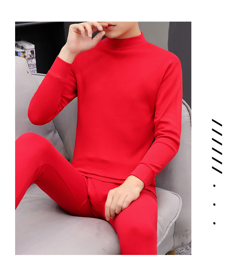 本命年龍年純綿秋衣秋ズボンセット男性半高襟保温下着秋冬薄タイプの赤い服