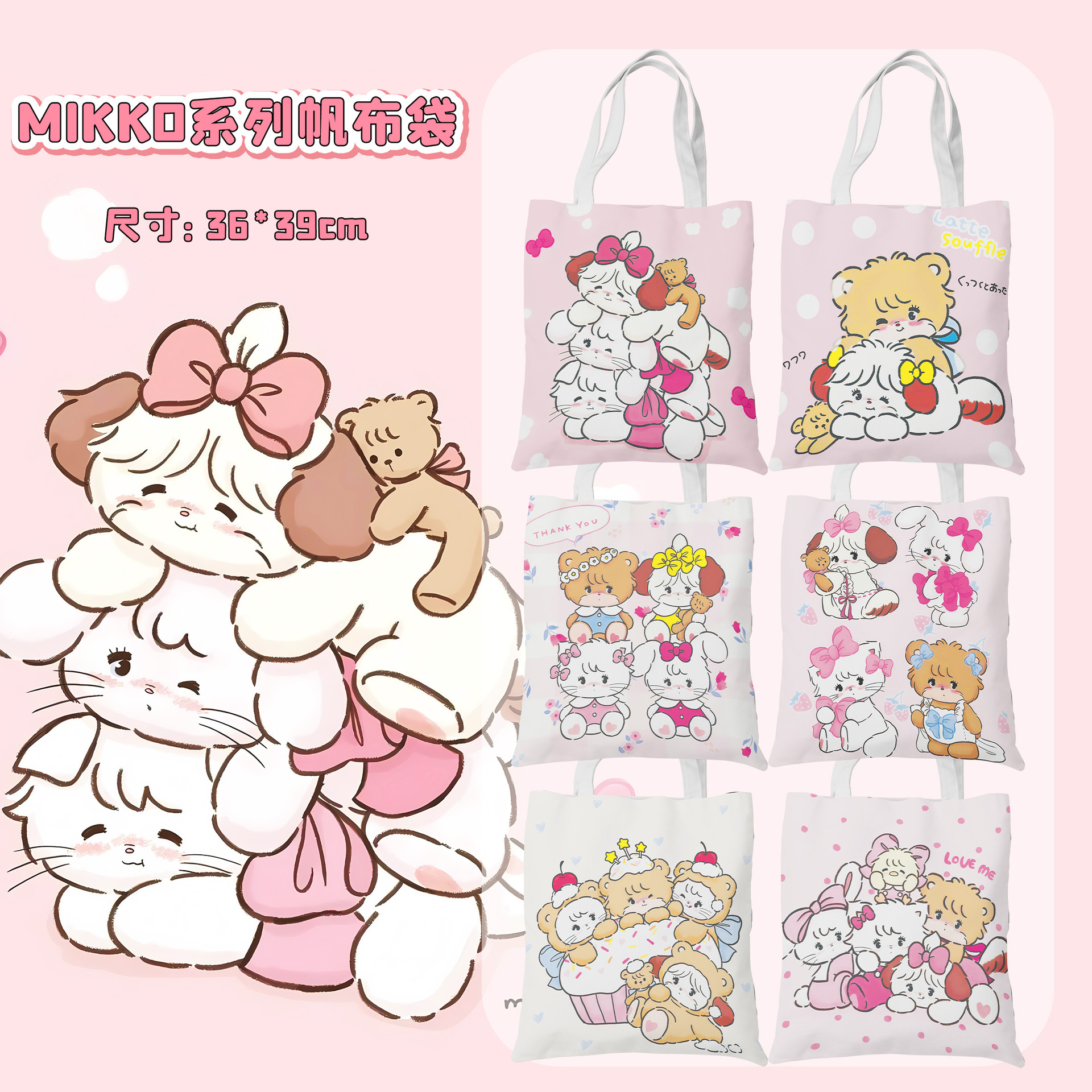 Mikkoかわいい猫ズックキャンバスバッグ学生通学授業バッグ大容量本入れハンドバッグ
