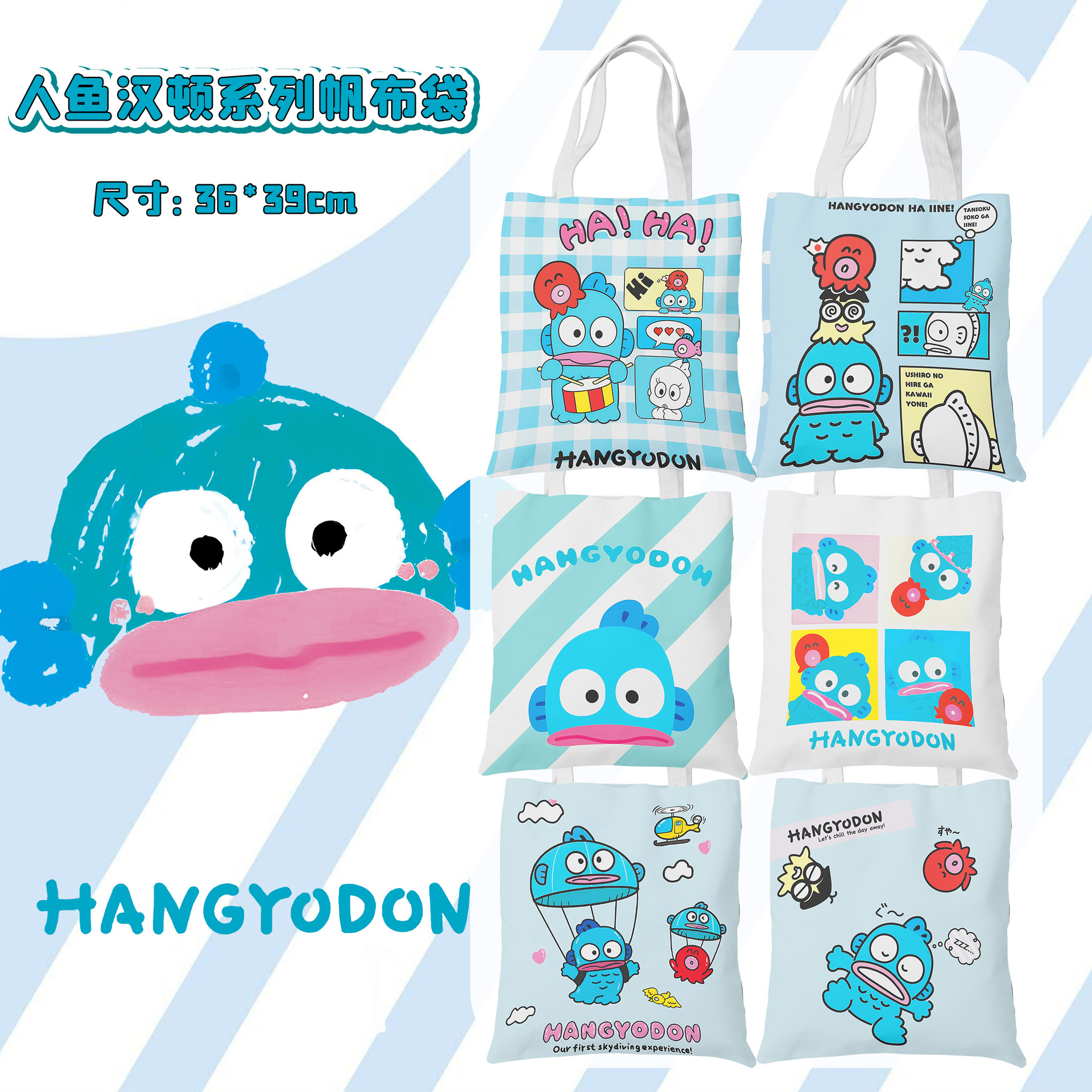 醜い魚の人魚漢トンキャンバスバッグ女性シングル肩シンプル学生手提げ袋バッグ女性周辺弁当バッグ