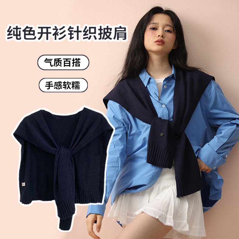 マントのニットの高級感の2024秋冬の新型のエアコンの部屋のメリヤスの小さいカンカンの肩の外は保温のマントの卸売りに乗ります。