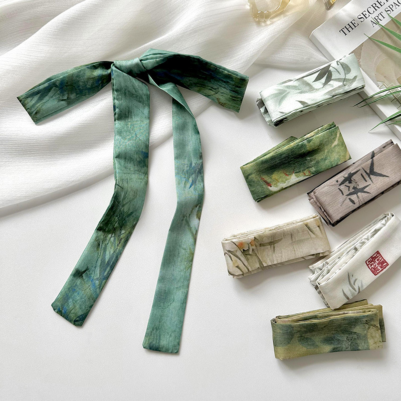 韓国の緑系のヘアバンドの長いスカーフの女性の韓国版の百合の髪は花の装飾のスカーフのリボンを縛ります。