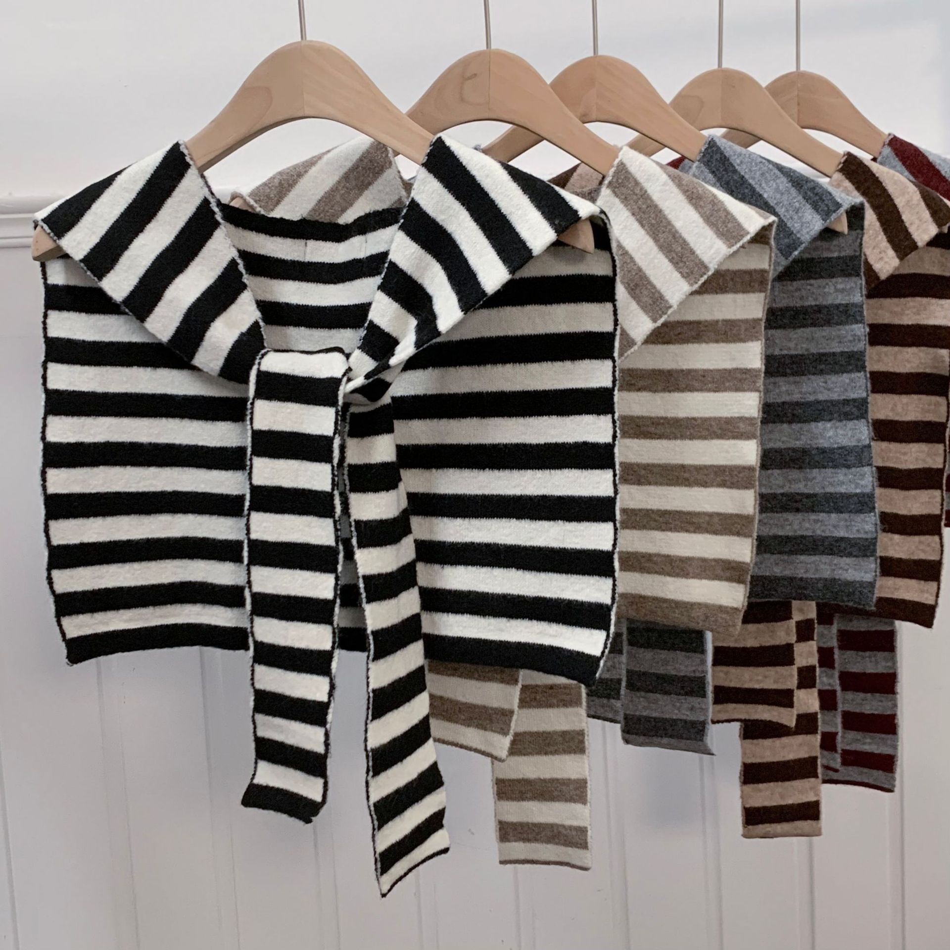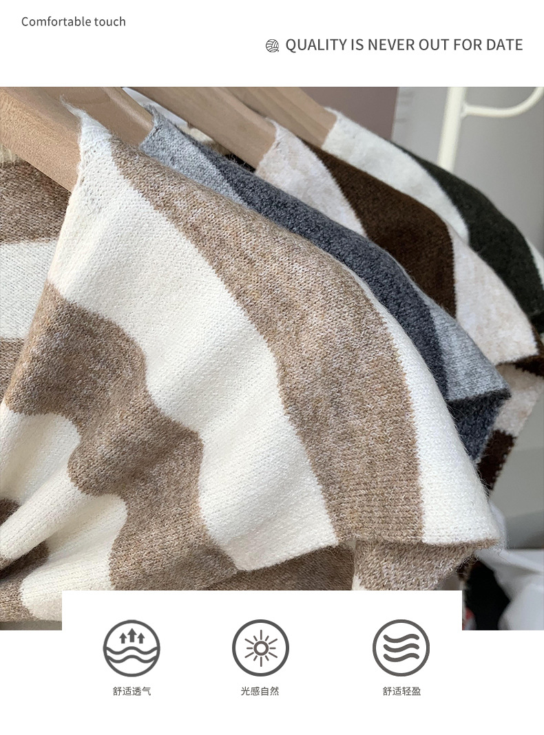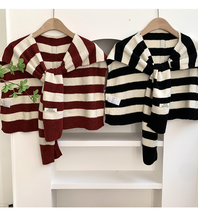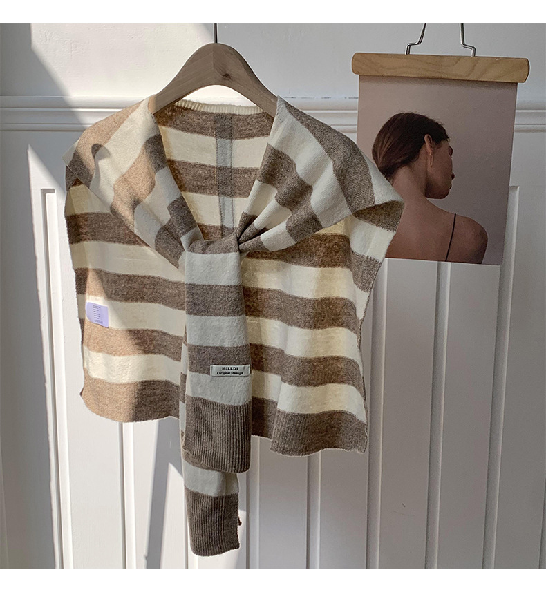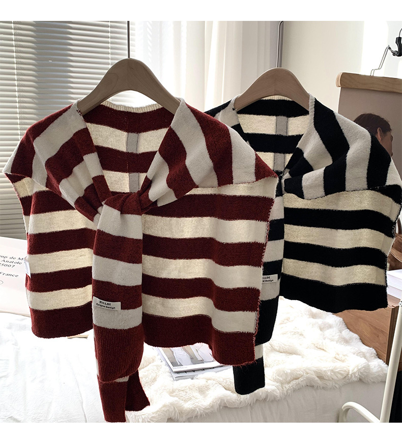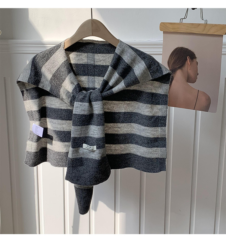 条纹披肩轻奢高级感慵懒风秋冬新款时尚保暖针织围脖围巾披肩一体