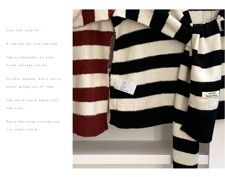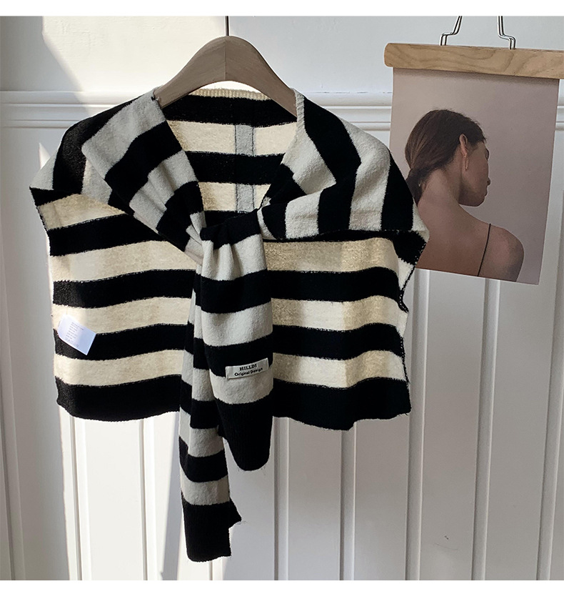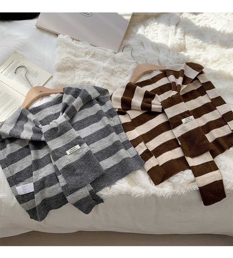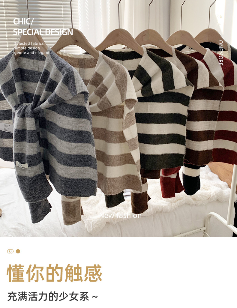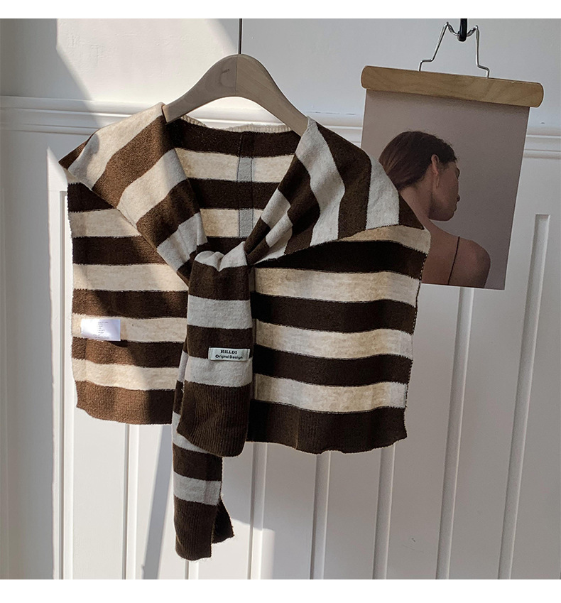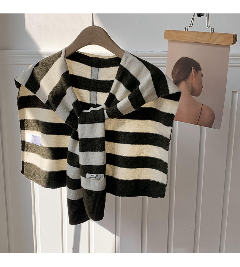 条纹披肩轻奢高级感慵懒风秋冬新款时尚保暖针织围脖围巾披肩一体