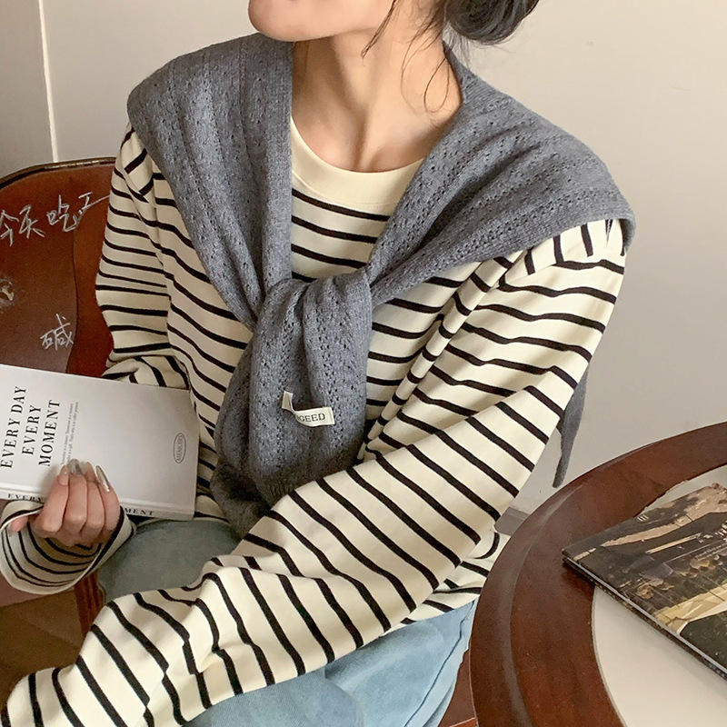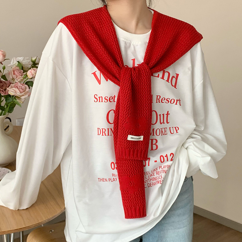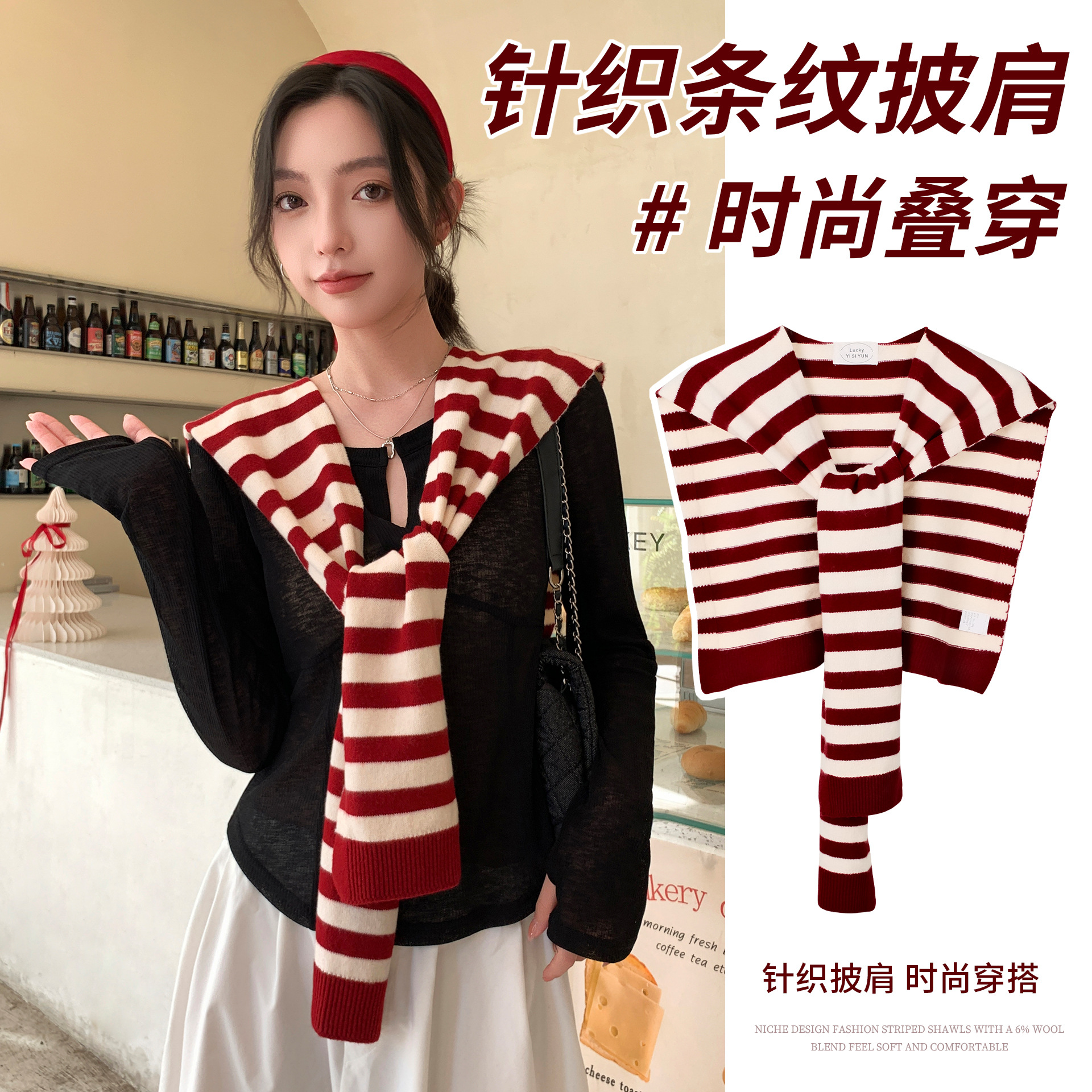 安可拉红色韩版新款针织条纹披肩春秋时尚外搭配裙子衬衫洋气坎肩