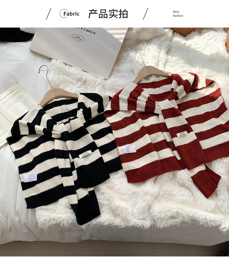 アンゴラの赤いニットのストライプのウールのストールの女性の春と秋の外は偽の襟のストールのマフラーを掛けます。