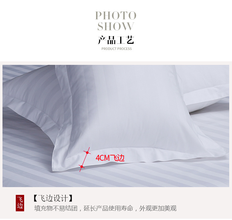 宾馆酒店床上用品涤棉纯白色加密加厚单人缎条枕套枕头套