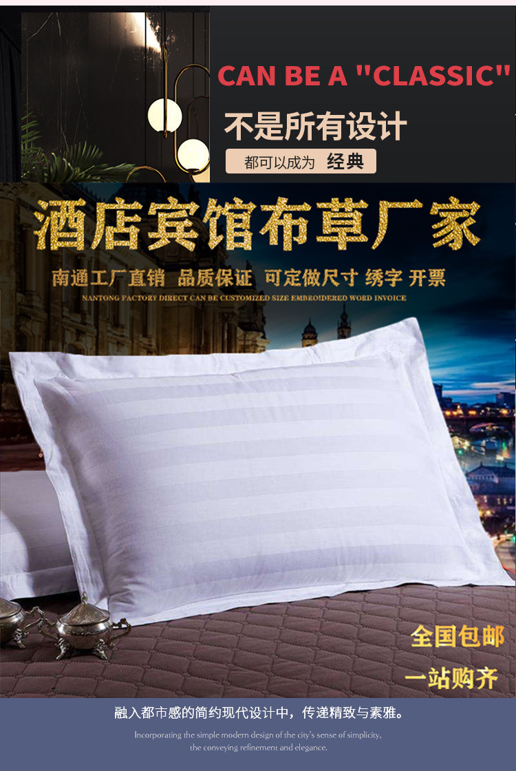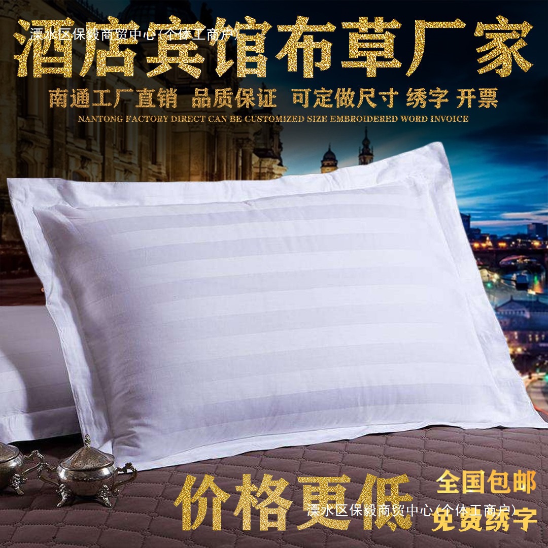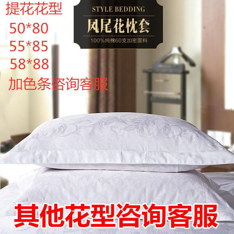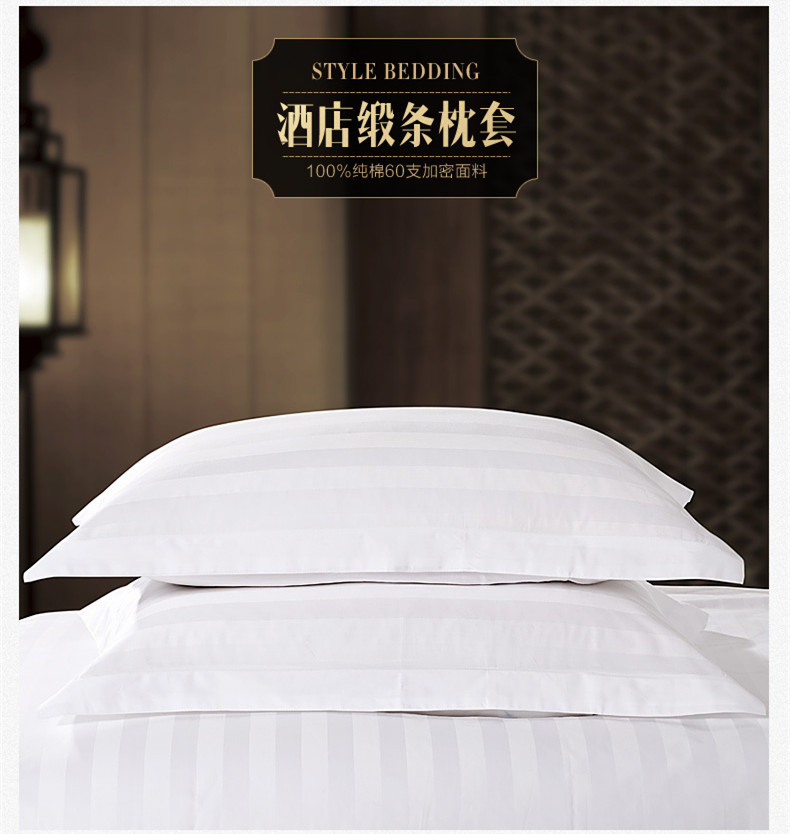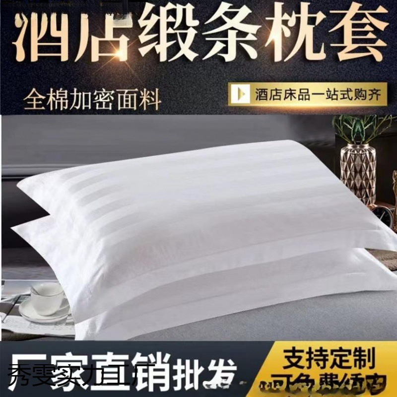 酒店宾馆医院枕套床上用品白色棉质纯白枕头套加密缎条纹贡缎斜纹