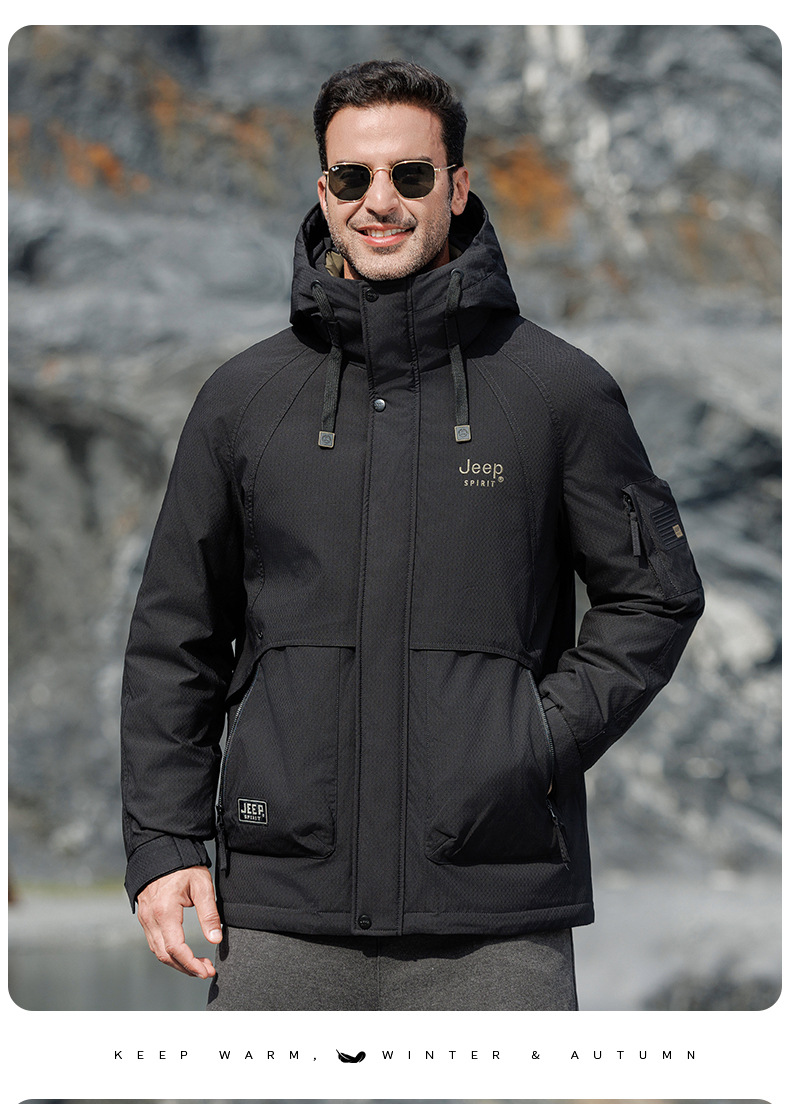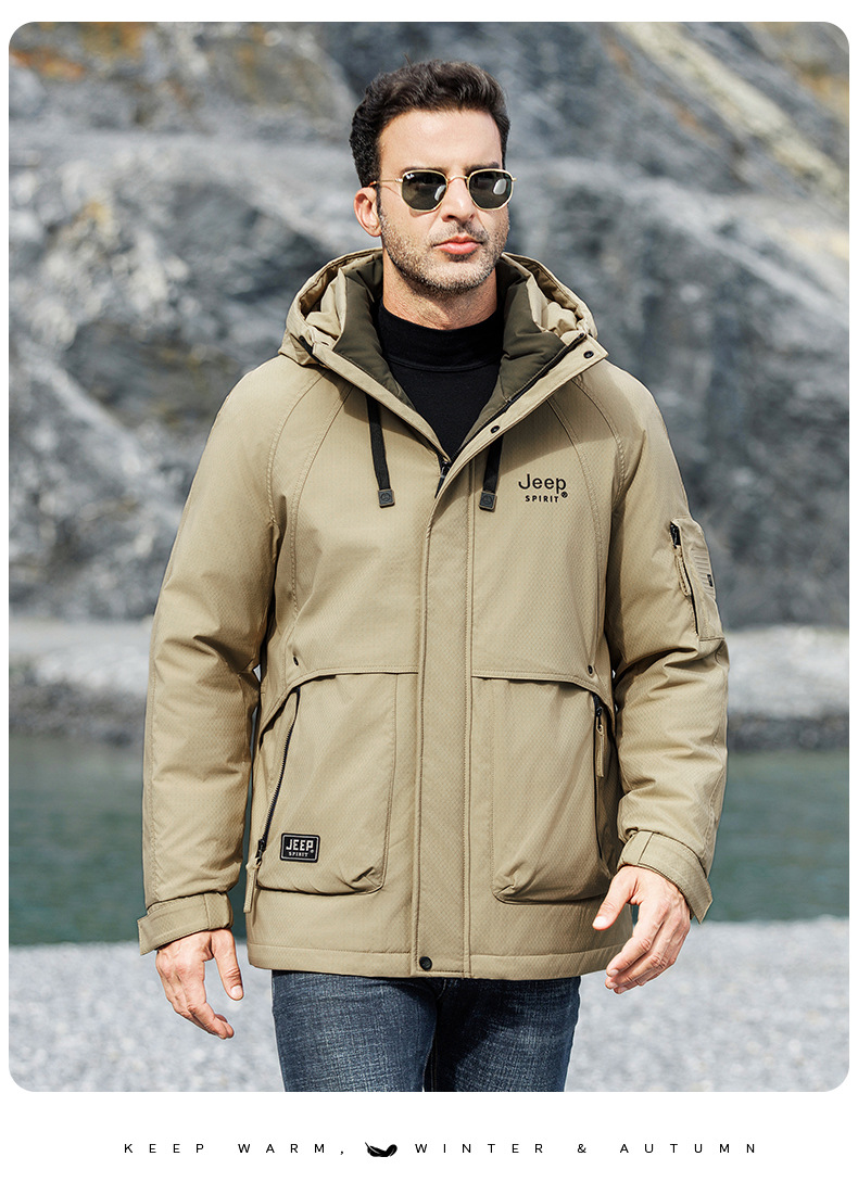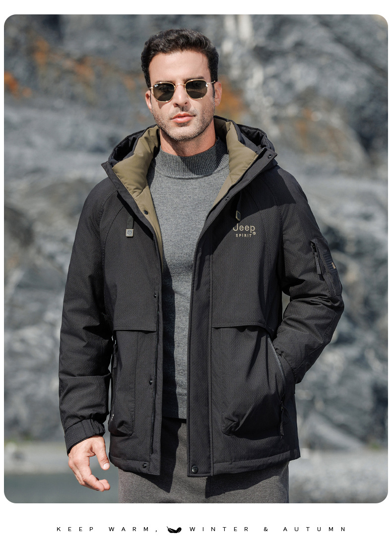 JEEP SPIRIT男性ダウンジャケット秋冬防風フード付き保温新型コート男