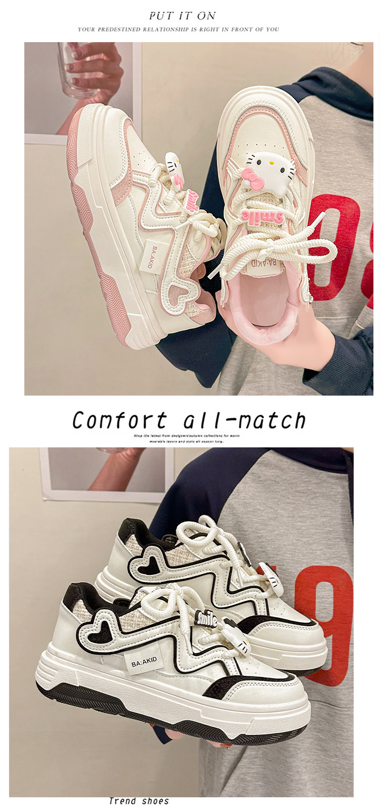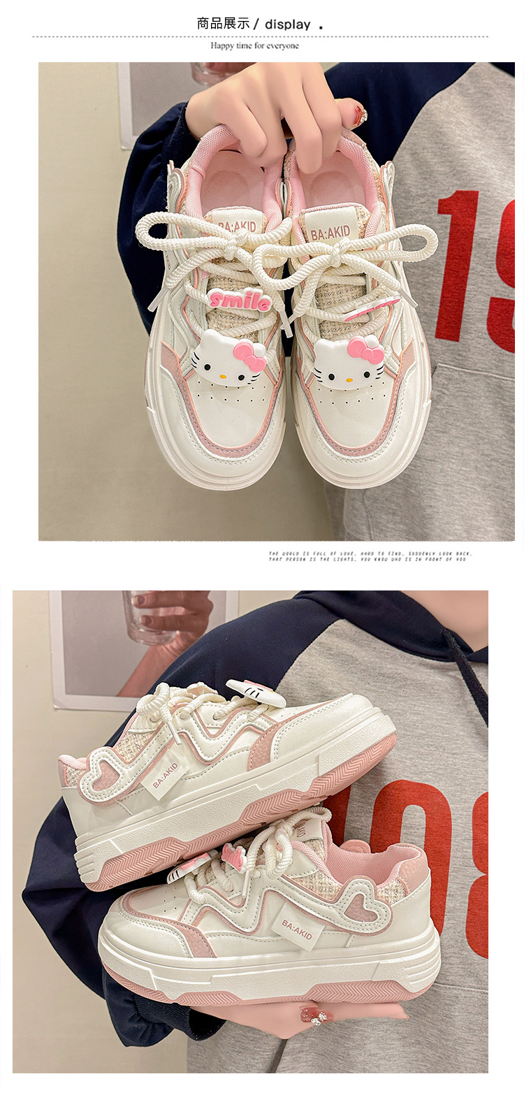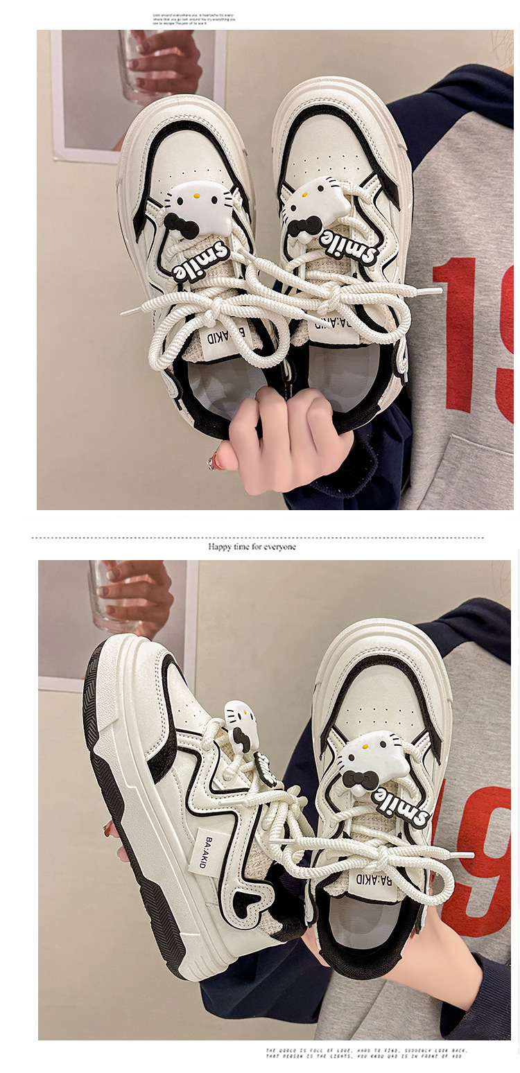 女の子のkt猫の板の靴の2024秋冬の新型の厚い底の石炭のボールの漫画のカジュアルな靴の滑り止めの百合の潮の中で大通の潮