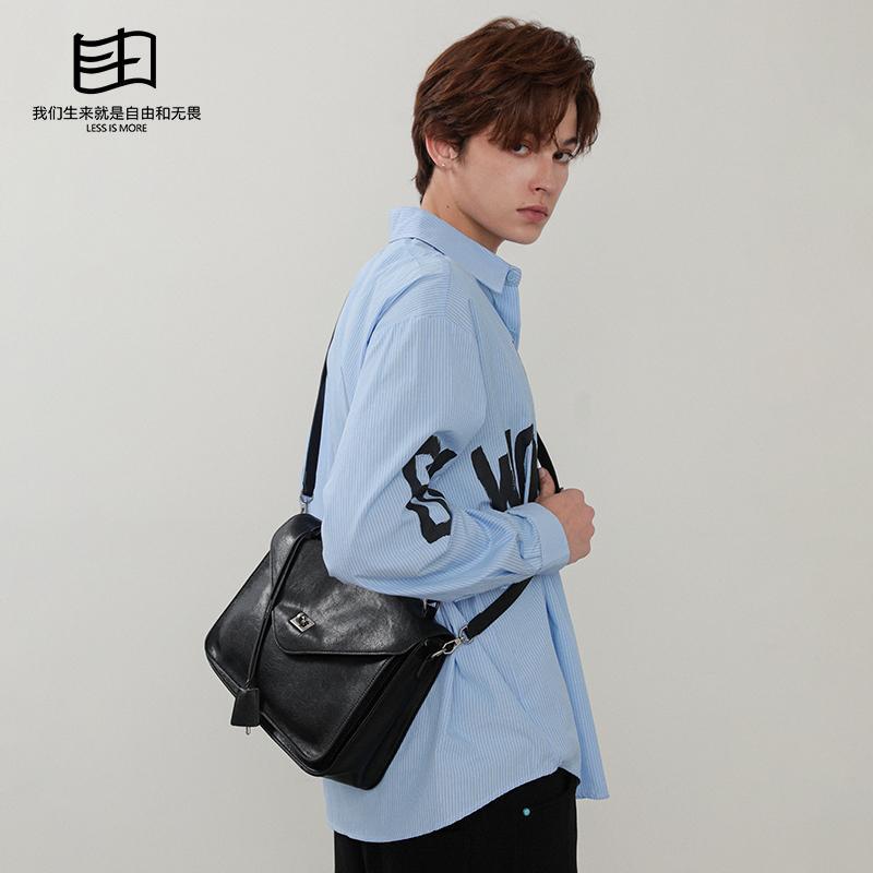 韓国ins風小衆潮牌男性包皮質大包多機能シングルショルダーバッグ街頭ファッションハンドバッグ
