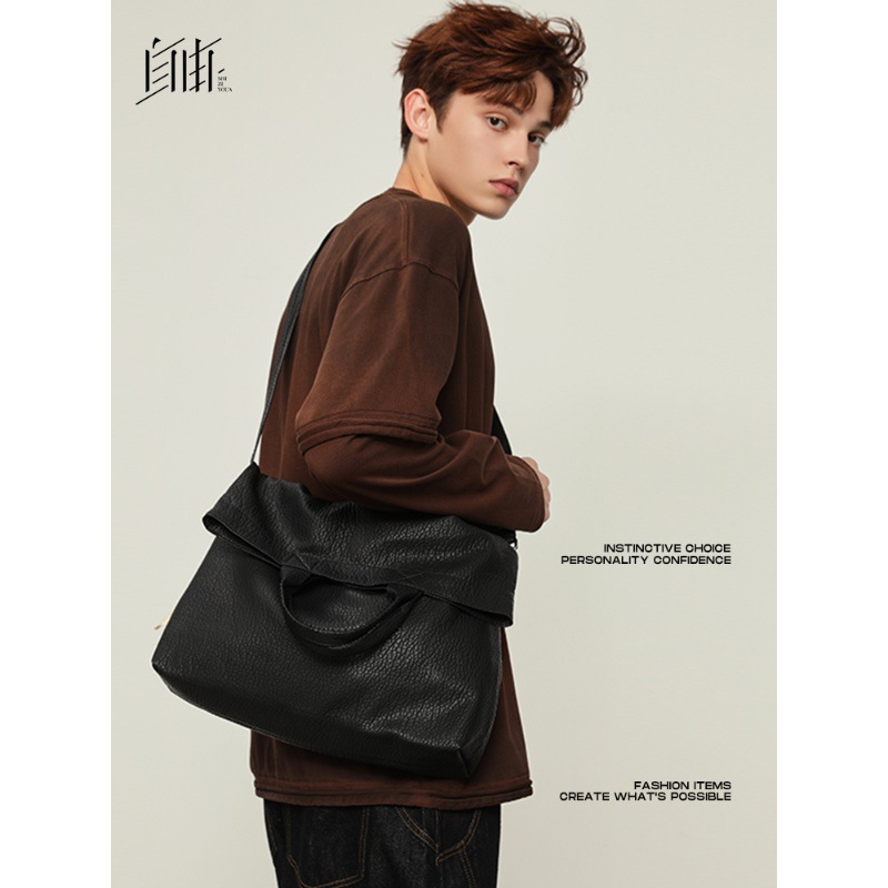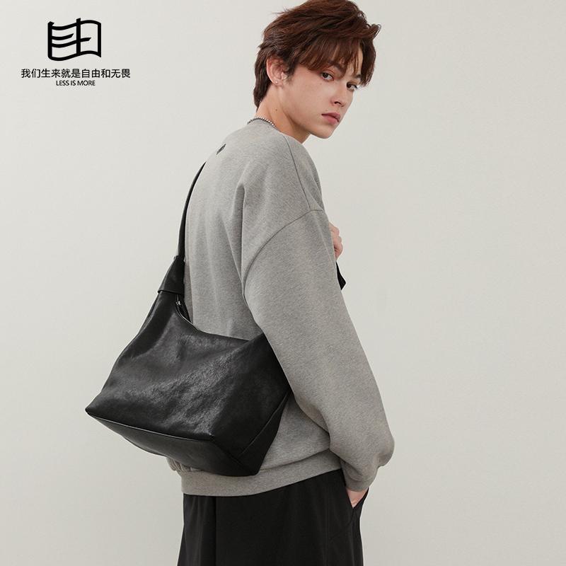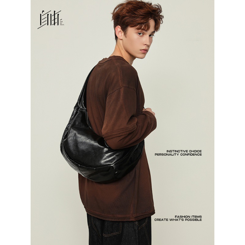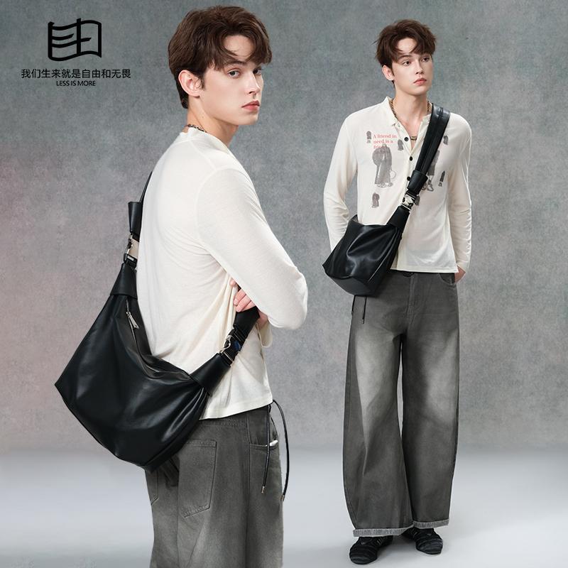 是自由啊 慵懒风软皮男包斜挎包2025新款小众设计大容量饺子包潮