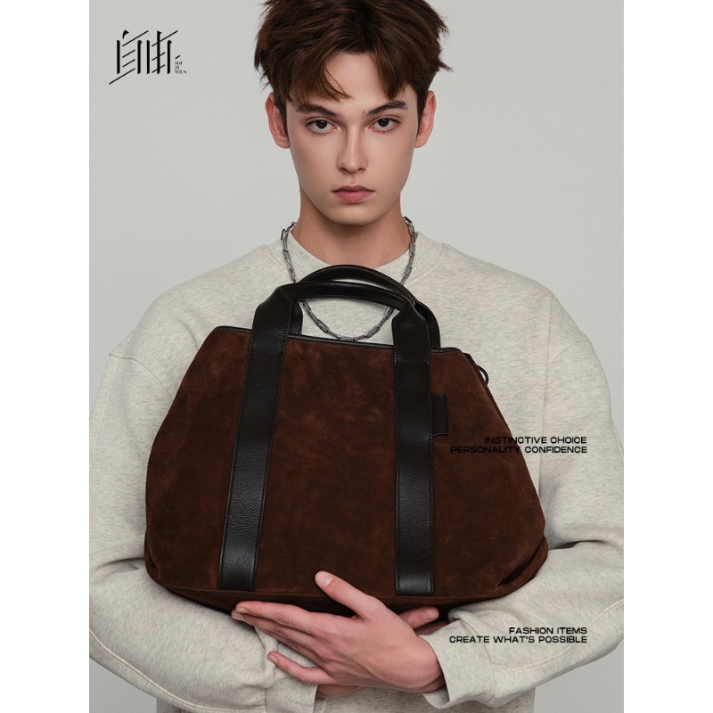 スエードのフロスト牛革のトートバッグ大容量バッグ男性カジュアルで怠惰な風の肩のショルダーバッグ