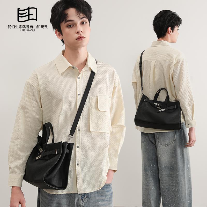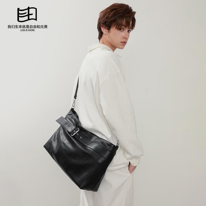 韓国ins風小衆潮牌男性包皮質大包多機能シングルショルダーバッグ街頭ファッションハンドバッグ