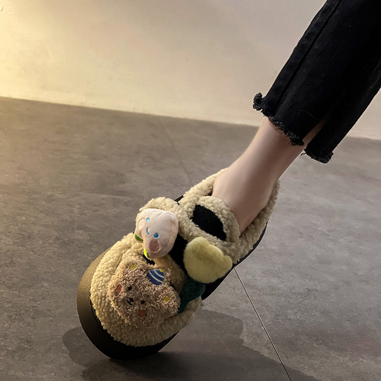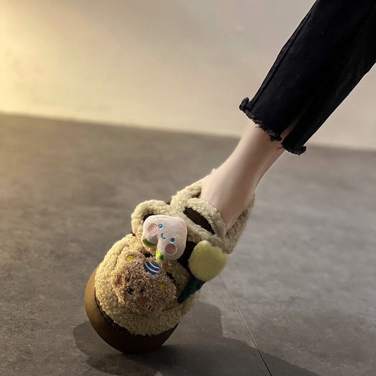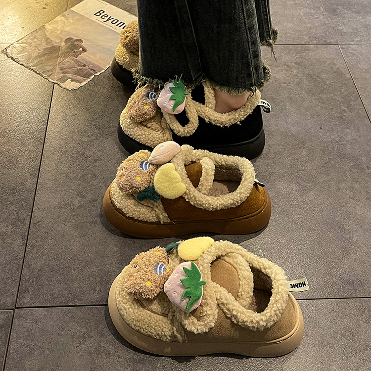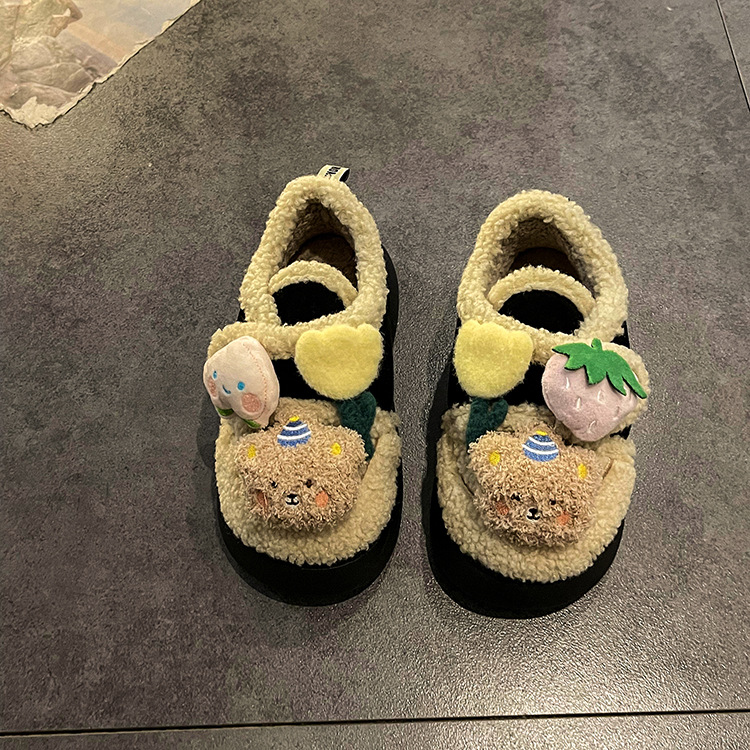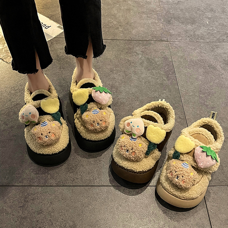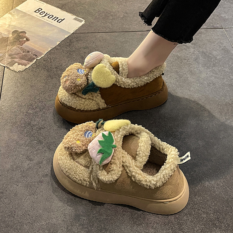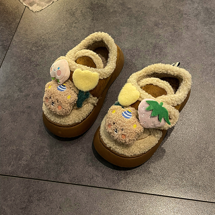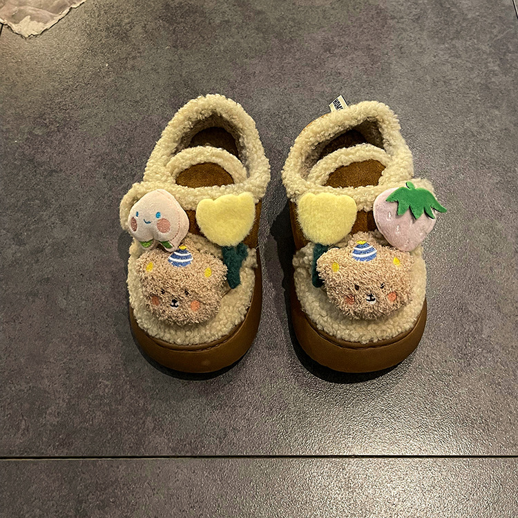 ミルクは綿の靴の女性のタイプの冬の新型の2024の外でベルベットの保温のかわいい毛の靴の厚い底の雪の靴の潮を着ます