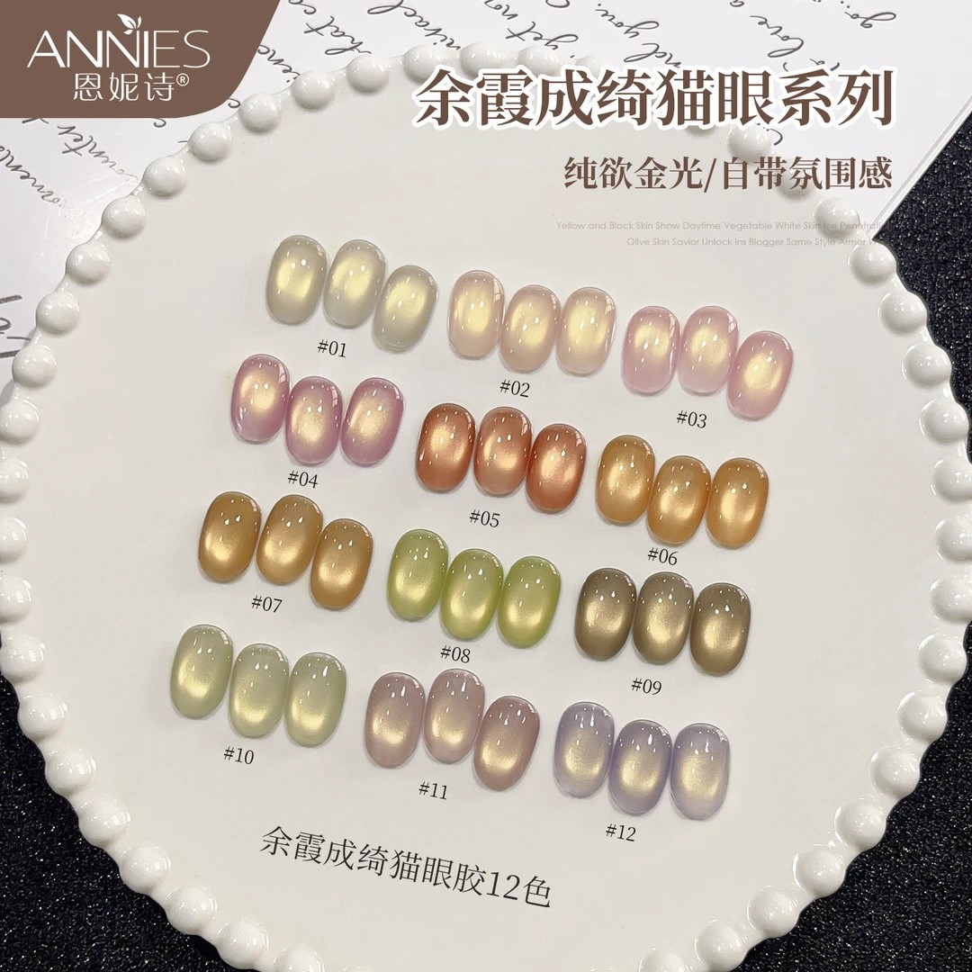 Ennis グリッターポーセリンホワイトムーンライトキャットアイマニキュア接着剤 2025 秋冬新作アンバークリスタルキャットアイマニキュア接着剤