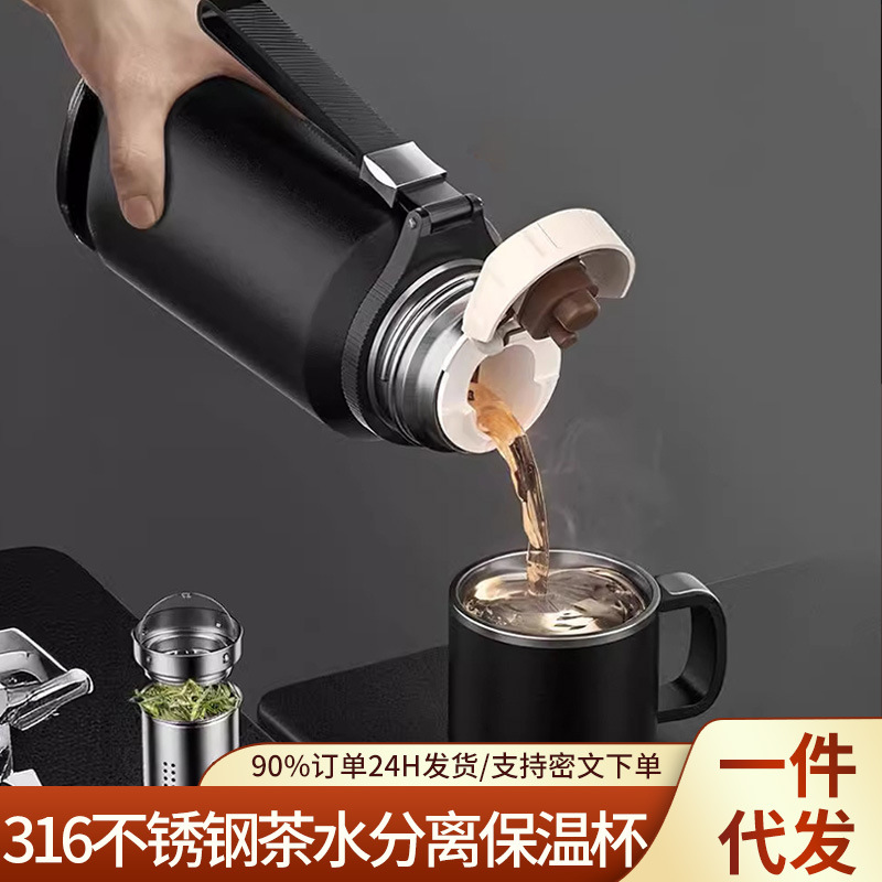316ステンレス茶水分離泡茶携帯保温カップ泡茶神器冬一蓋両用保温カップ