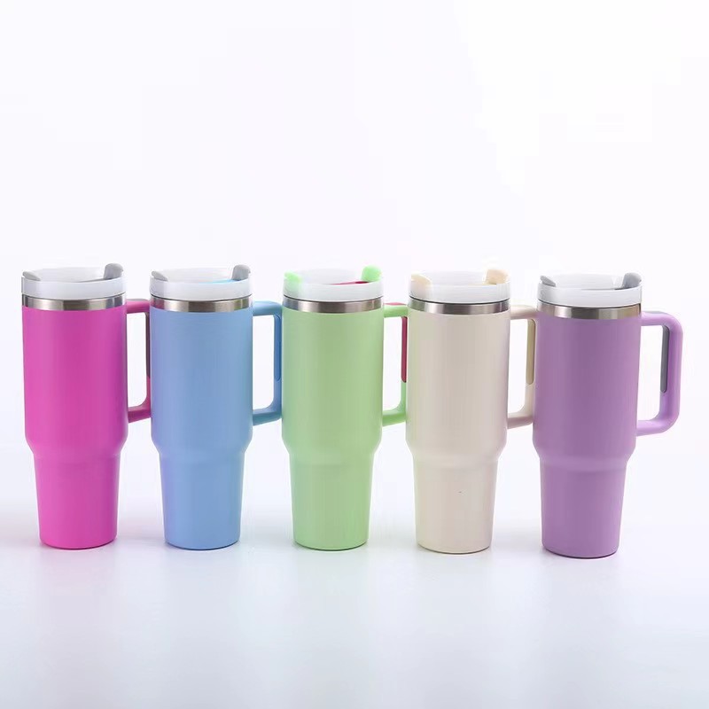 跨境亚马逊BTS 打印40oz车载汽车杯带手柄吸管保温杯冰霸杯带吸管