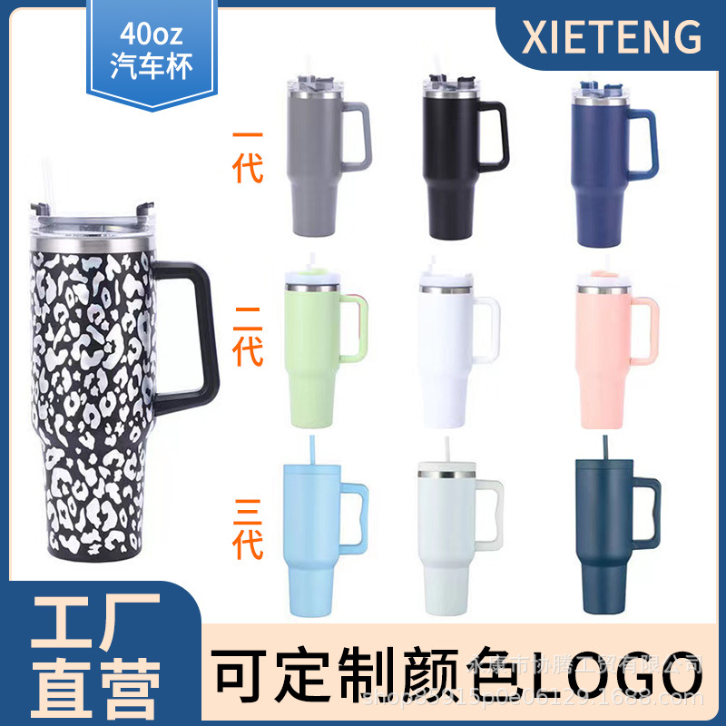 40オンス自動車カップ大容量一二三世代ハンドル付き304ステンレス保温ストロー氷覇カップマーク