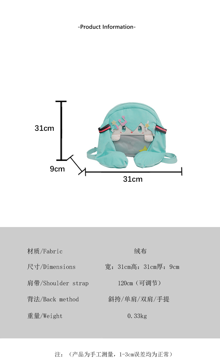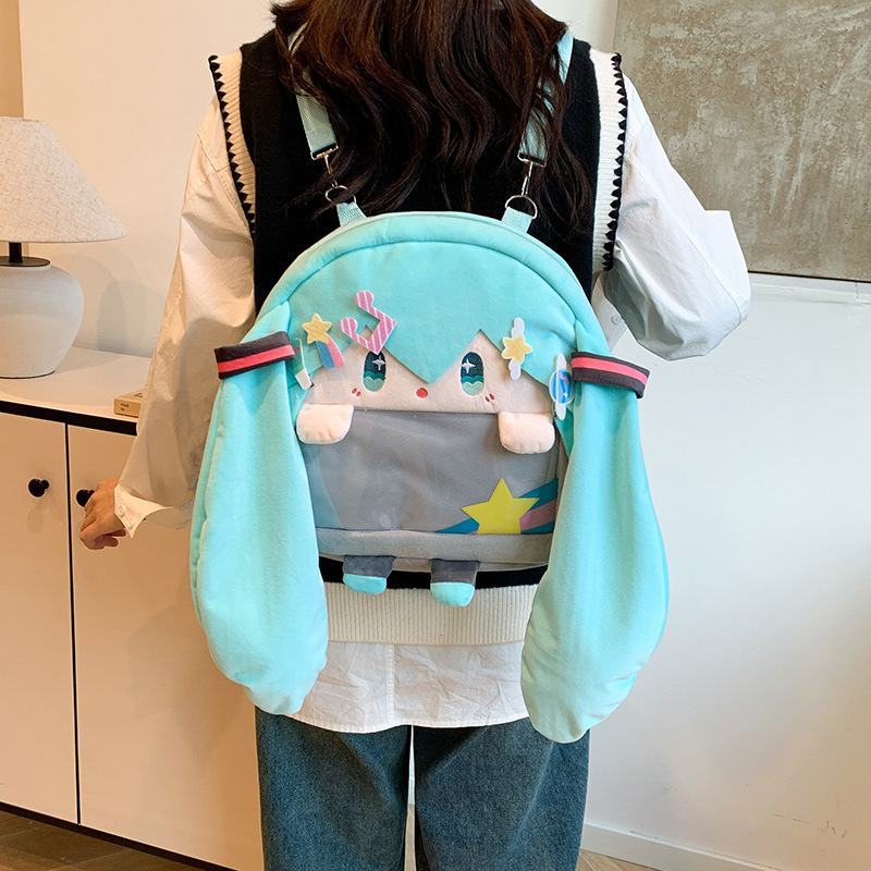 跨境时尚通勤初音未来二次元毛绒可爱痛包儿童背包玩偶书包双肩包