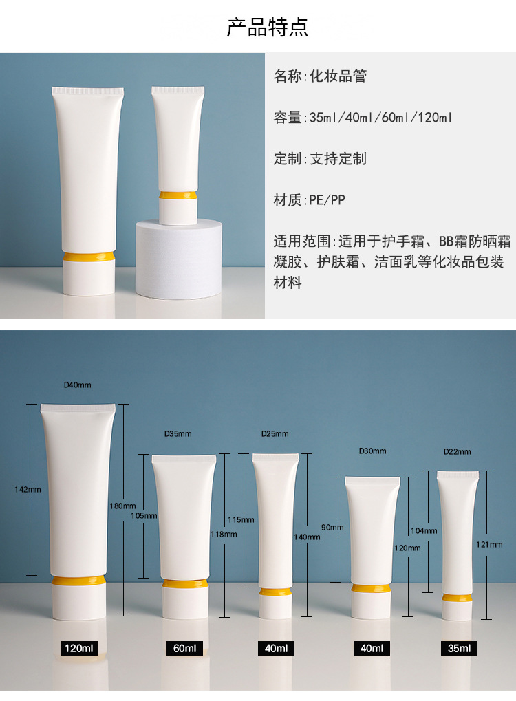 30-120ml化粧品ホース日焼け止めクリーム包装材ウエストカバー隔離乳ホースカスタムハンドクリーム扁管
