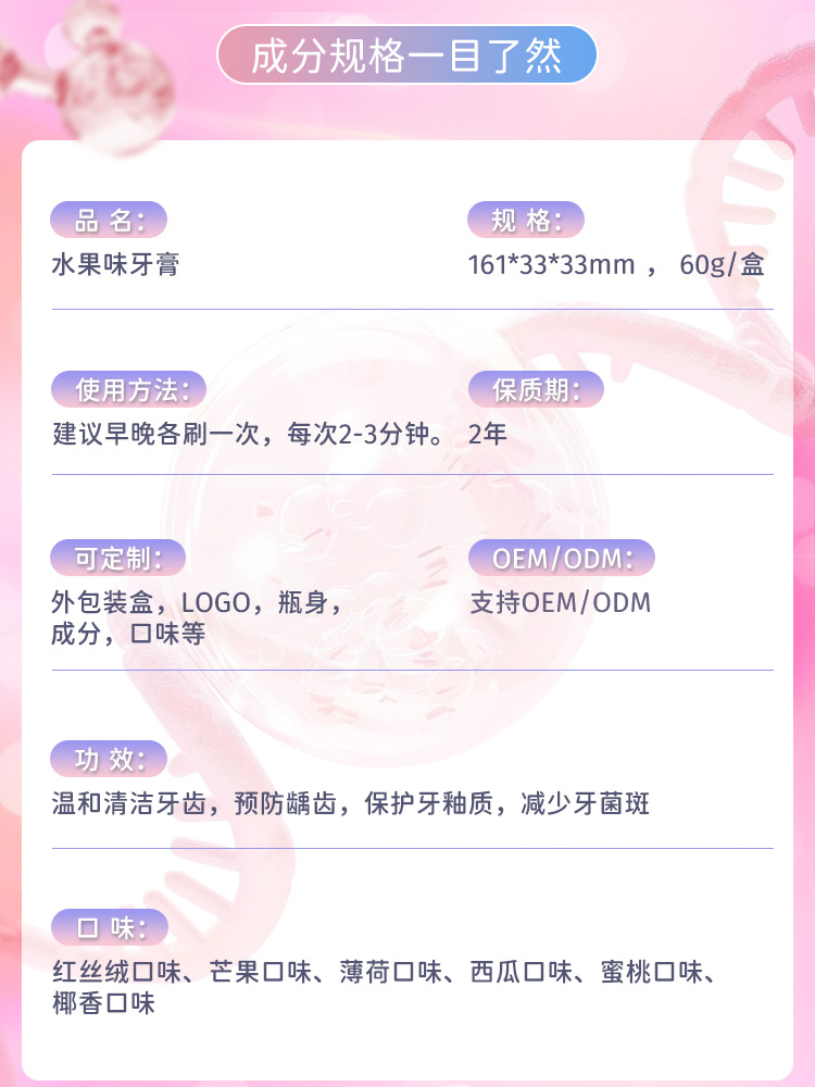 国境を越えた人気の歯磨き粉フルーティーホワイトニング歯磨き粉口をきれいにし、黄ばみを取り除き、口臭を取り除き、歯のホワイトニング卸売