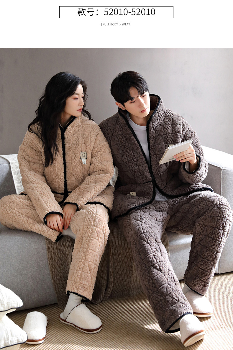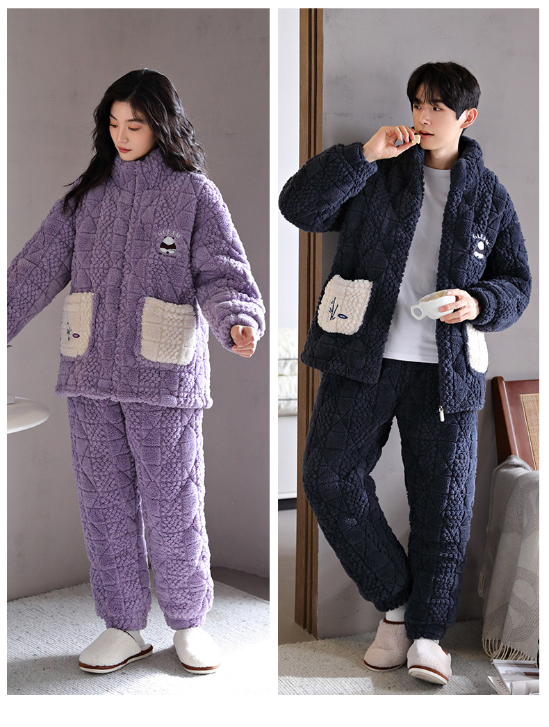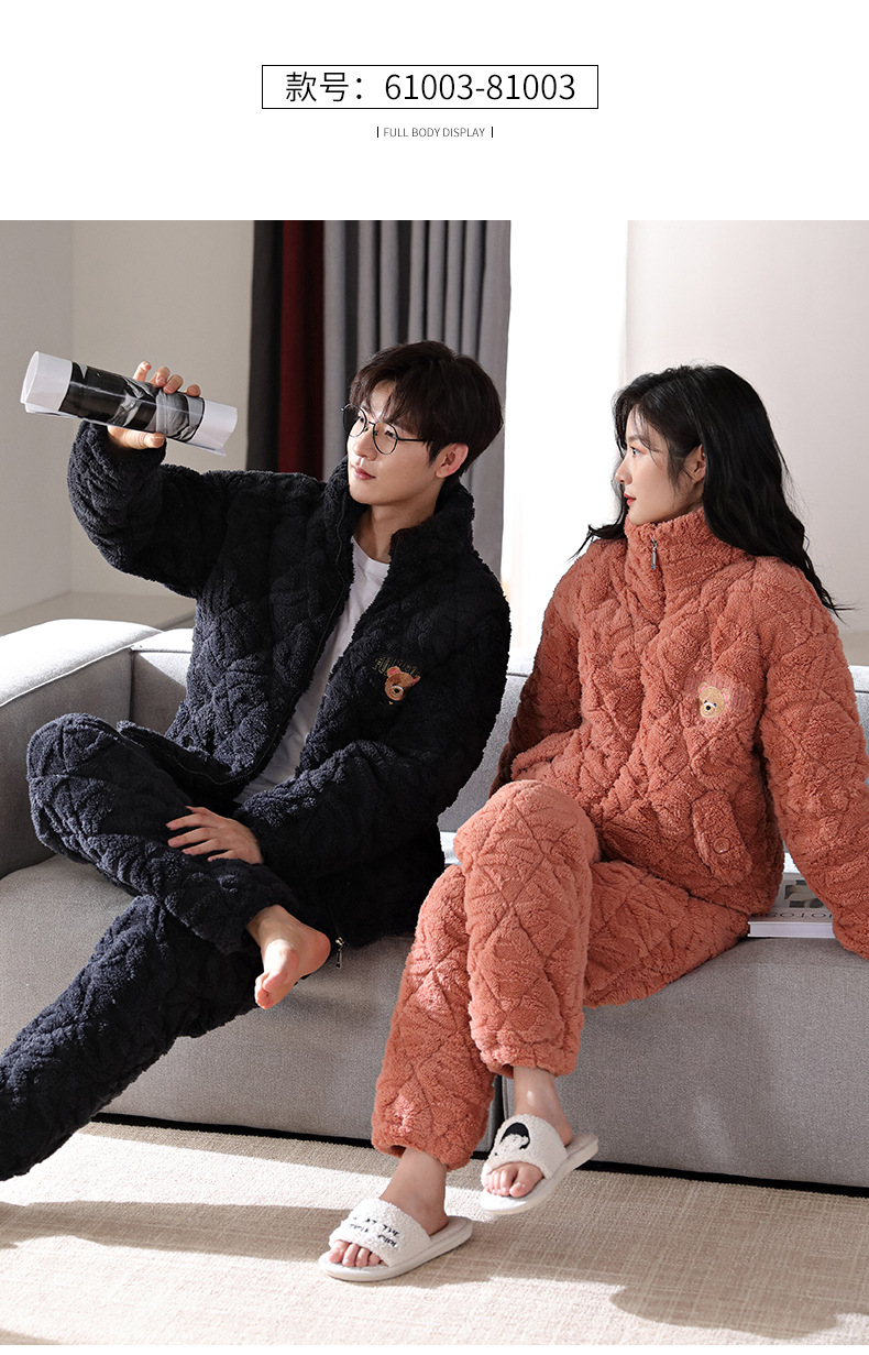 冬のカップルのパジャマ男性はサンゴのベルベットの三層を厚くして綿を挟んで女性の冬にベルベットの保温家の服を着ることができる
