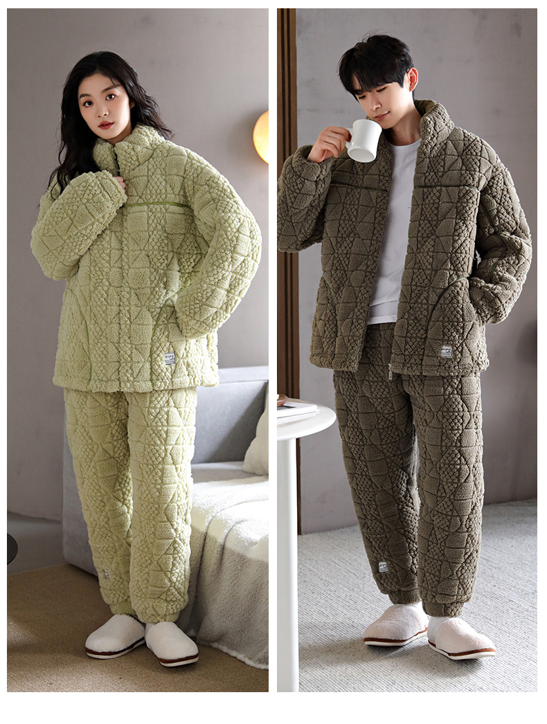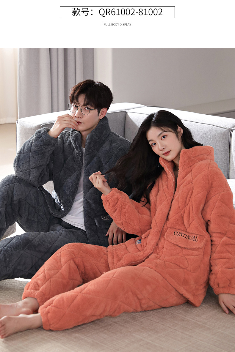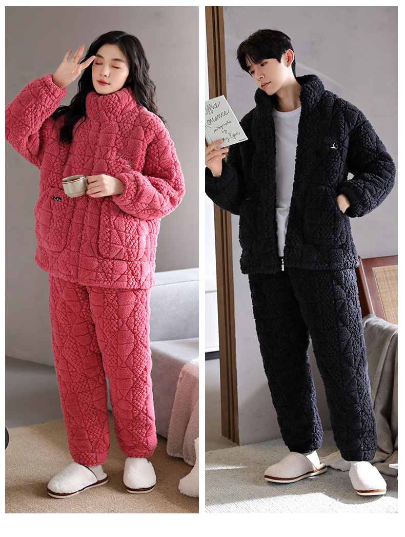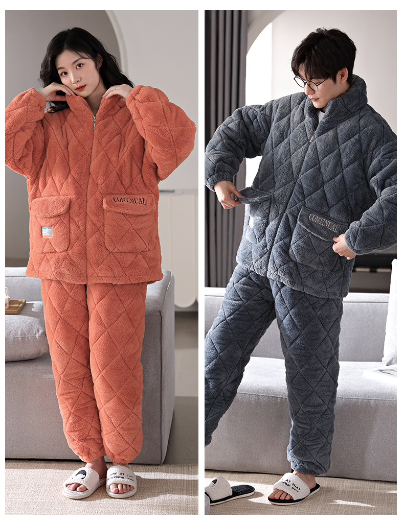 パジャマ女性冬コーラルベルベット三層コットン高襟ジッパーカップルスーツは保温男性の部屋服を着ることができる
