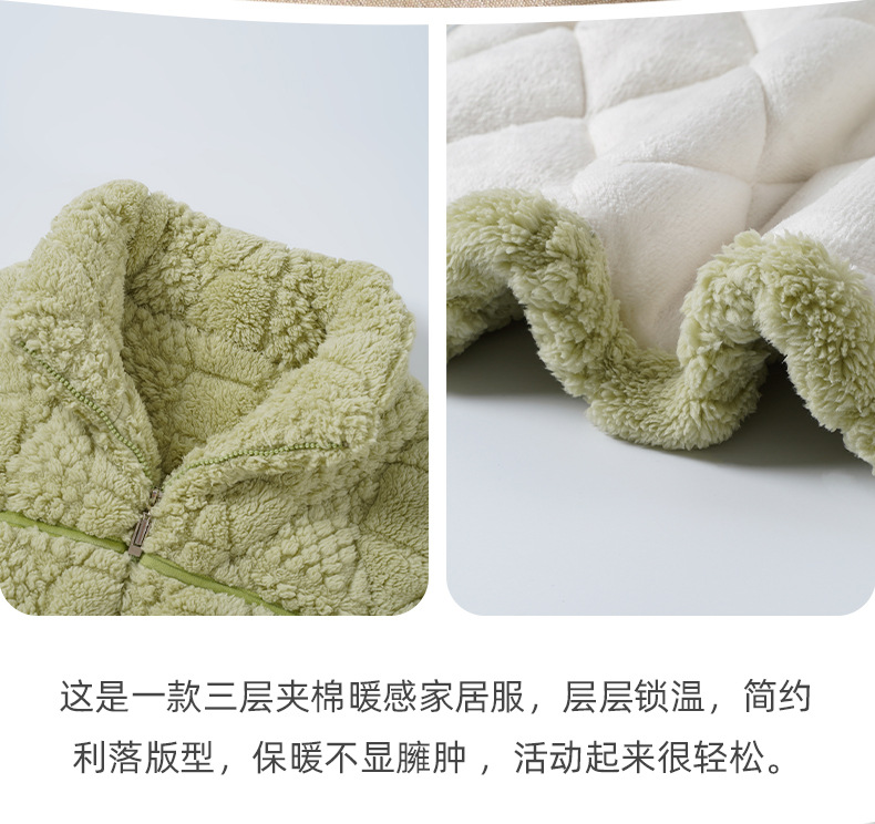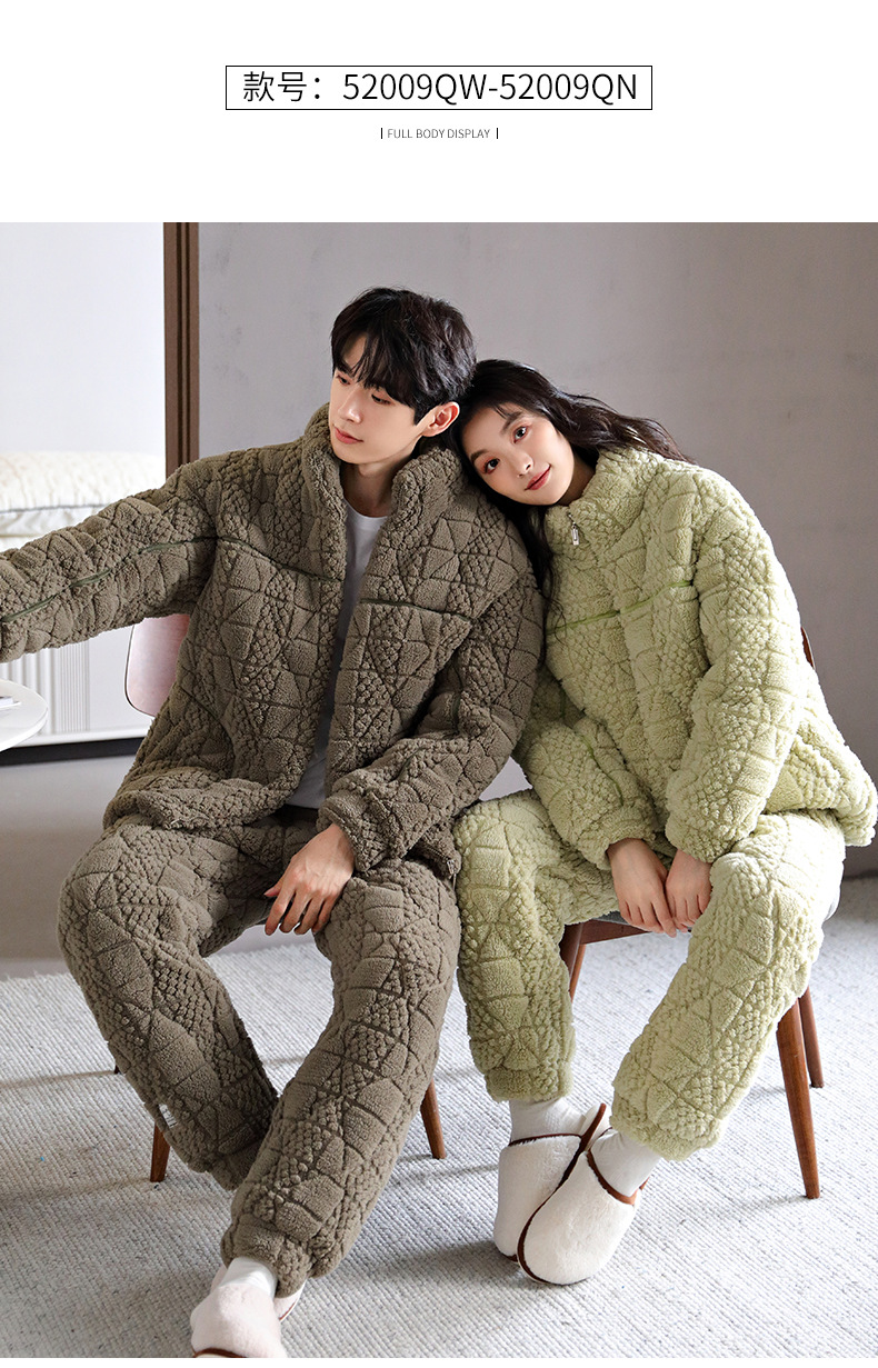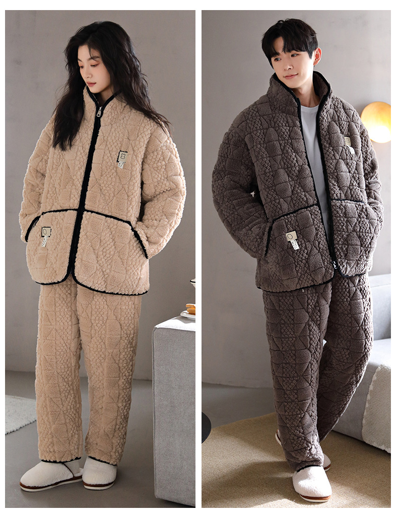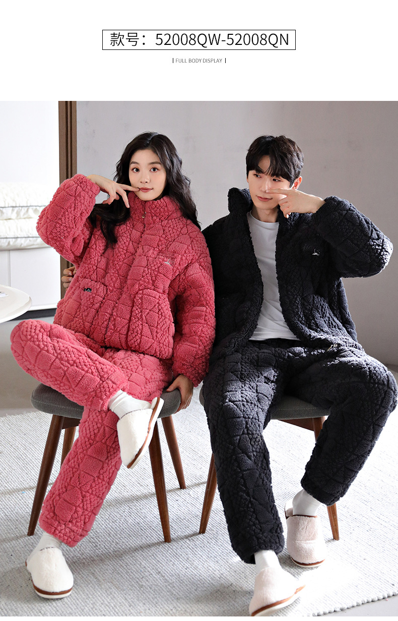 パジャマ女性冬コーラルベルベット三層コットン高襟ジッパーカップルスーツは保温男性の部屋服を着ることができる