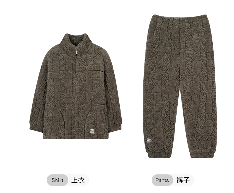 三層綿を挟んだパジャマ男性冬のフランネルとベルベットの厚いサンゴのベルベット男性の家庭服セットは外で着ることができる