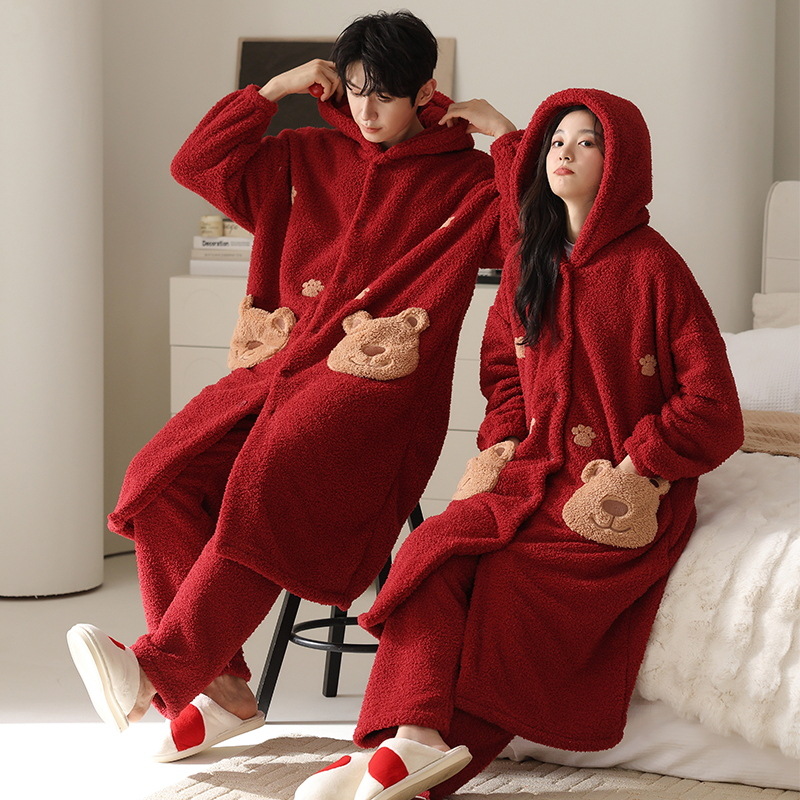 ベルベットパジャマ女性冬保温大紅カップルスーツ新婚本命年襟カーディガン男性ホーム服