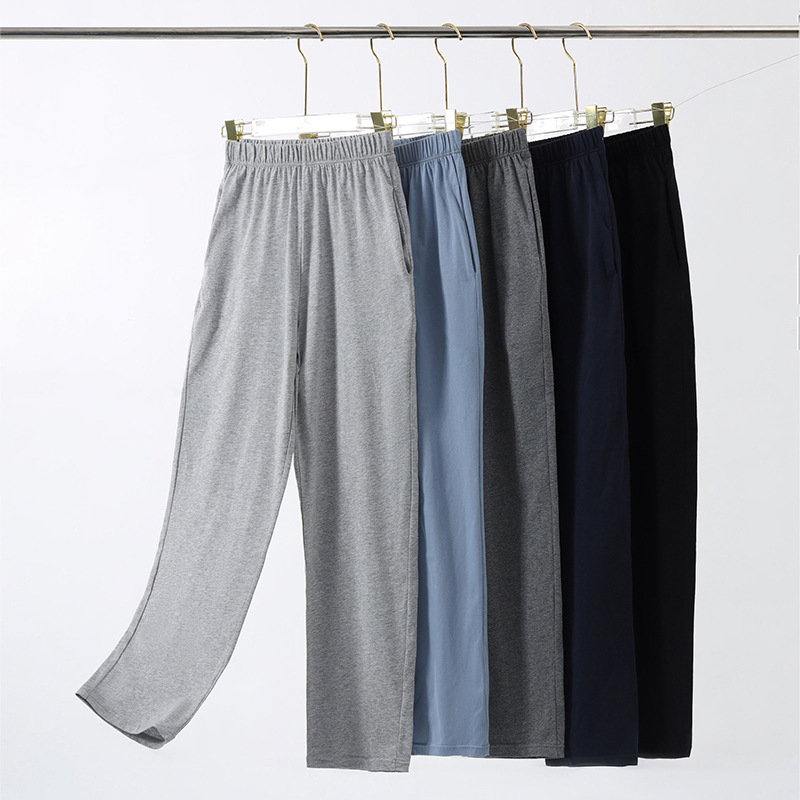 男性の寝ズボン春秋綿の薄いタイプのゆったりとしたカジュアルなズボンは大きいサイズの純色の男性の家のズボンをプラスして通気します。