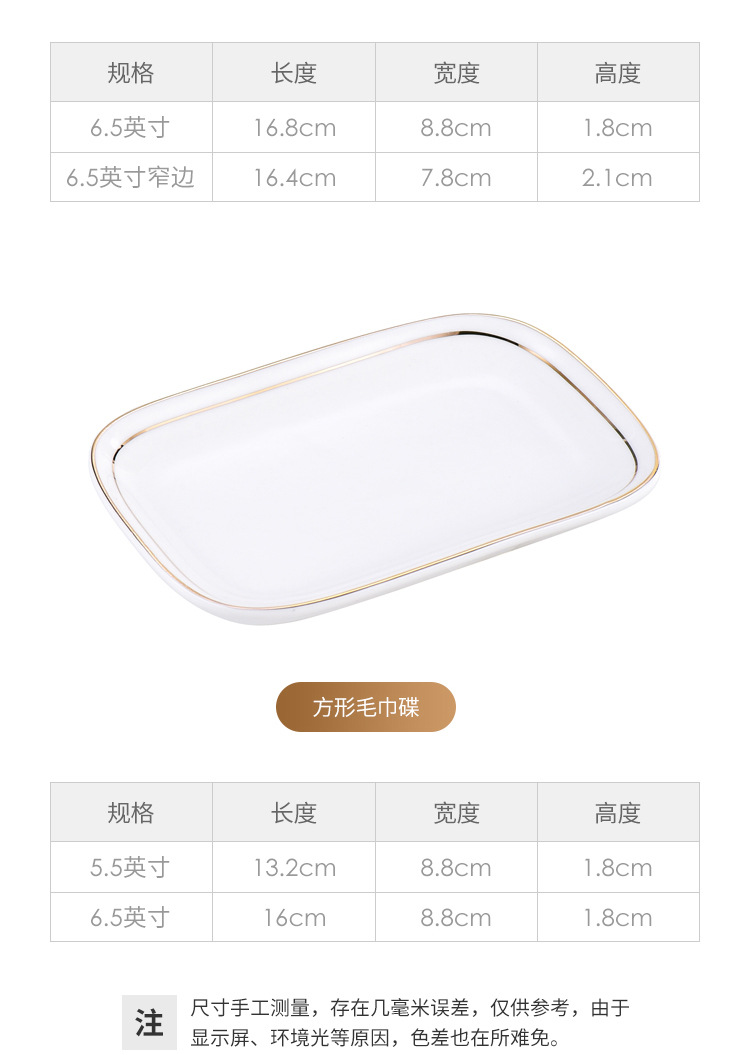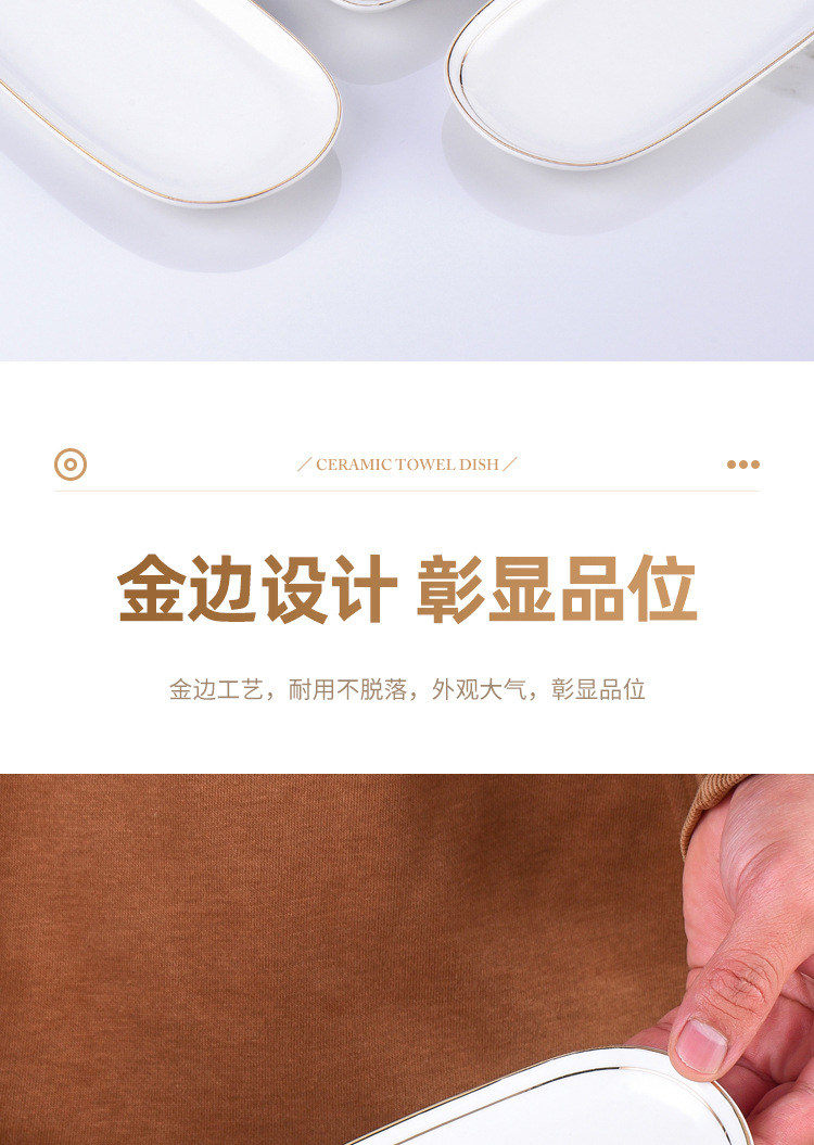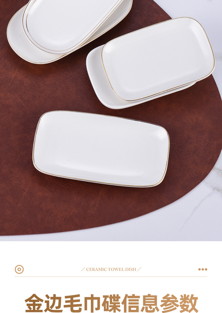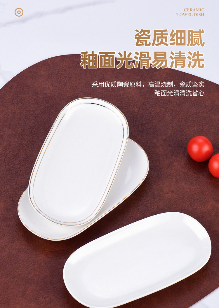 纯白金边陶瓷毛巾碟香皂碟子椭圆长方形毛巾托家用湿巾盘装毛巾盘