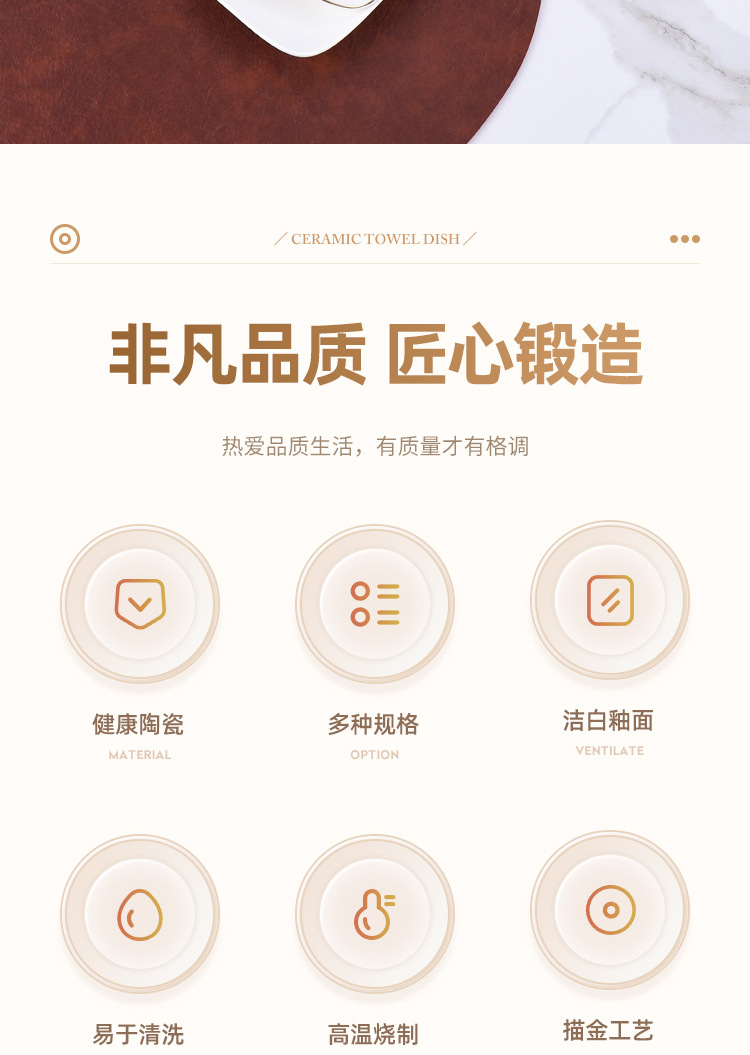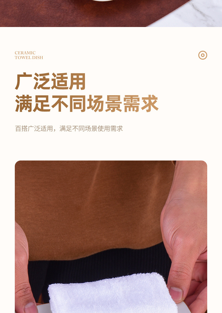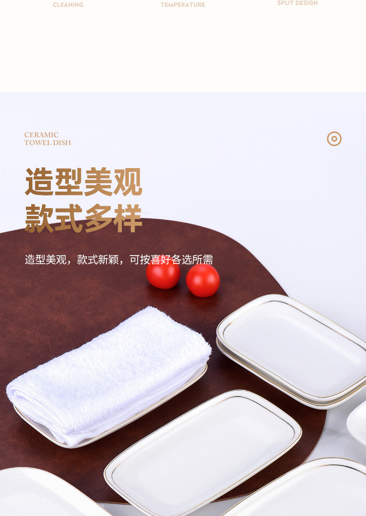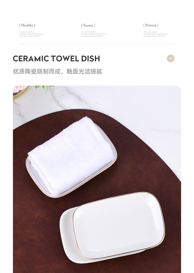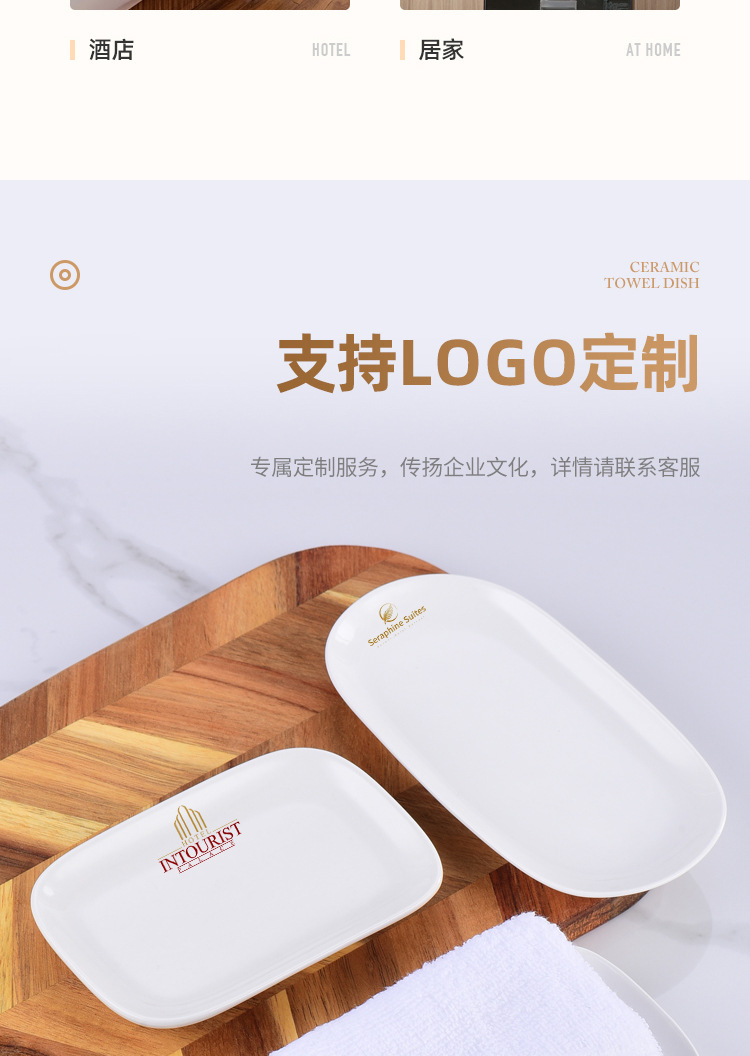 纯白金边陶瓷毛巾碟香皂碟子椭圆长方形毛巾托家用湿巾盘装毛巾盘