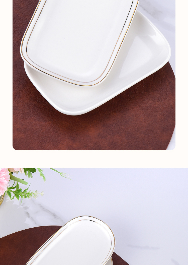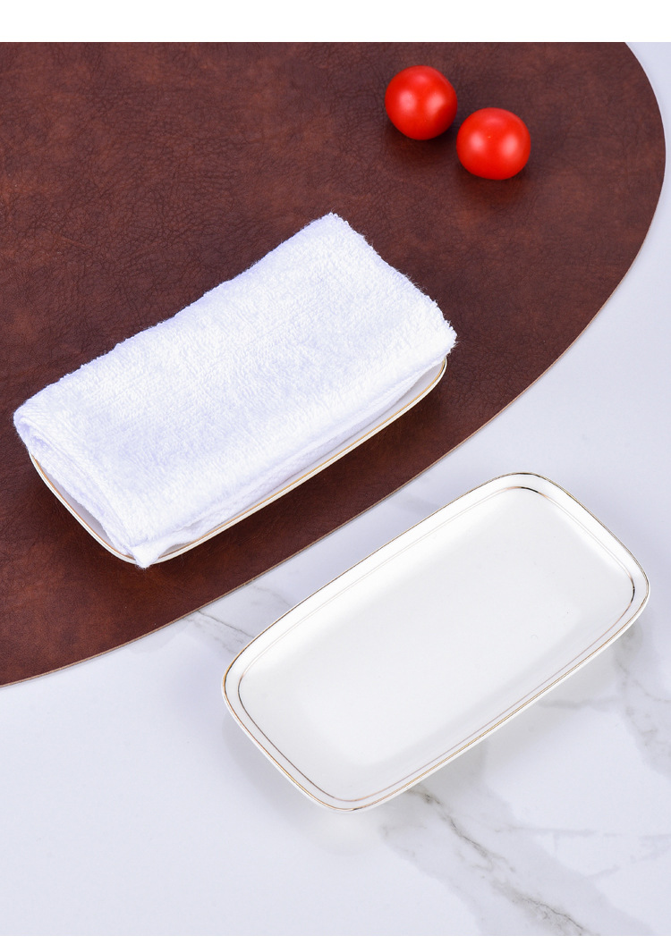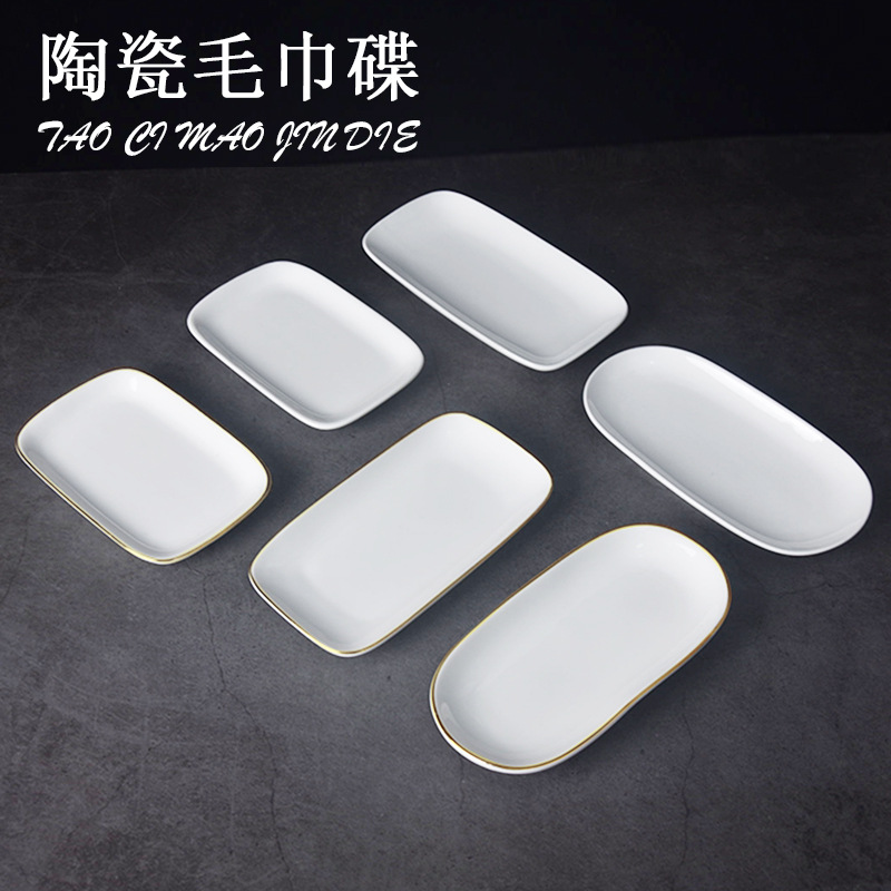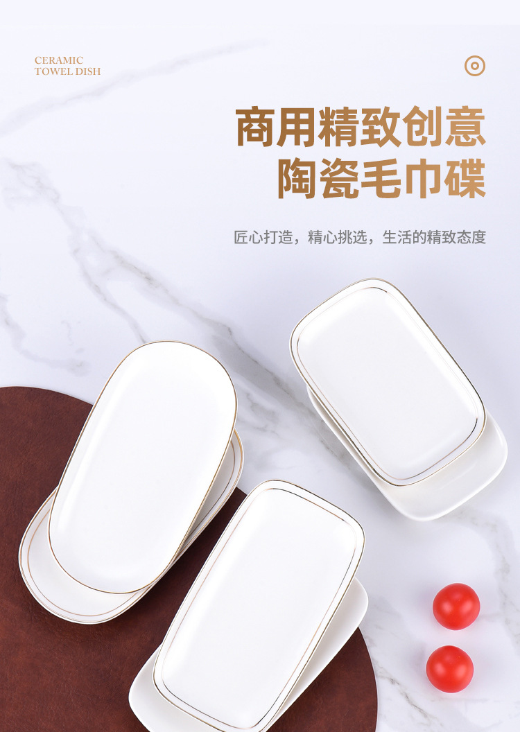 純白ホテル陶磁器タオル皿石鹸皿楕円長方形金辺タオルトレイウェットティッシュ皿タオル皿